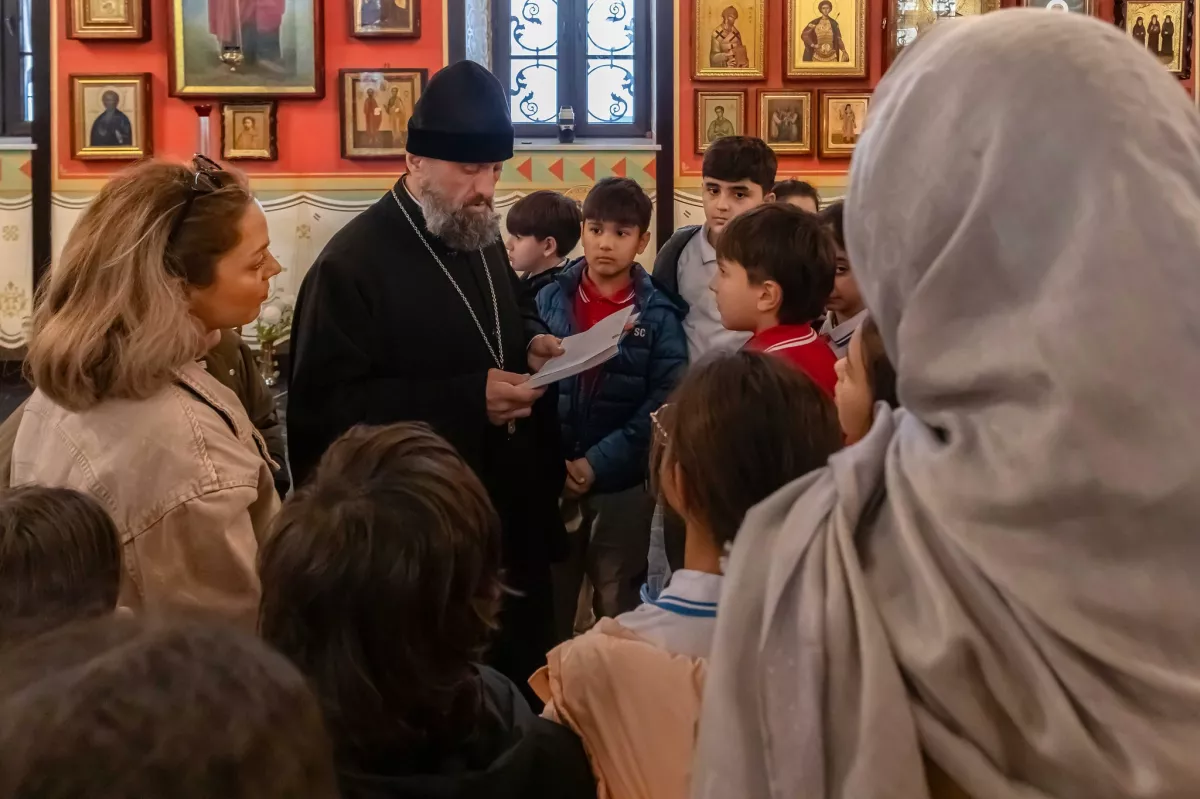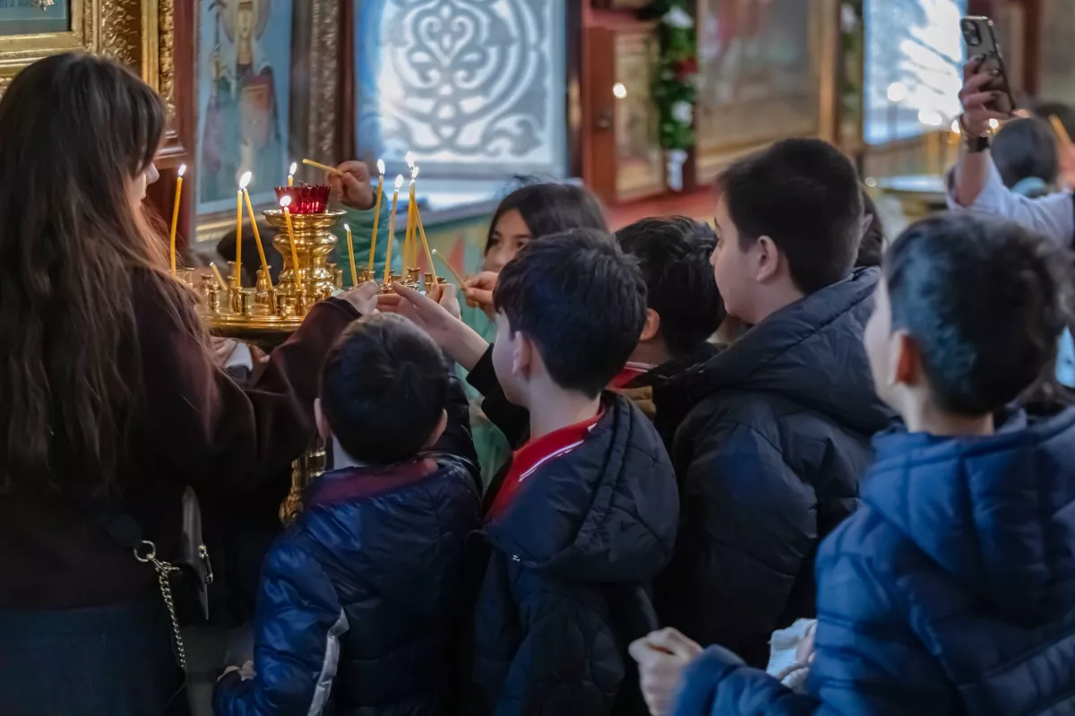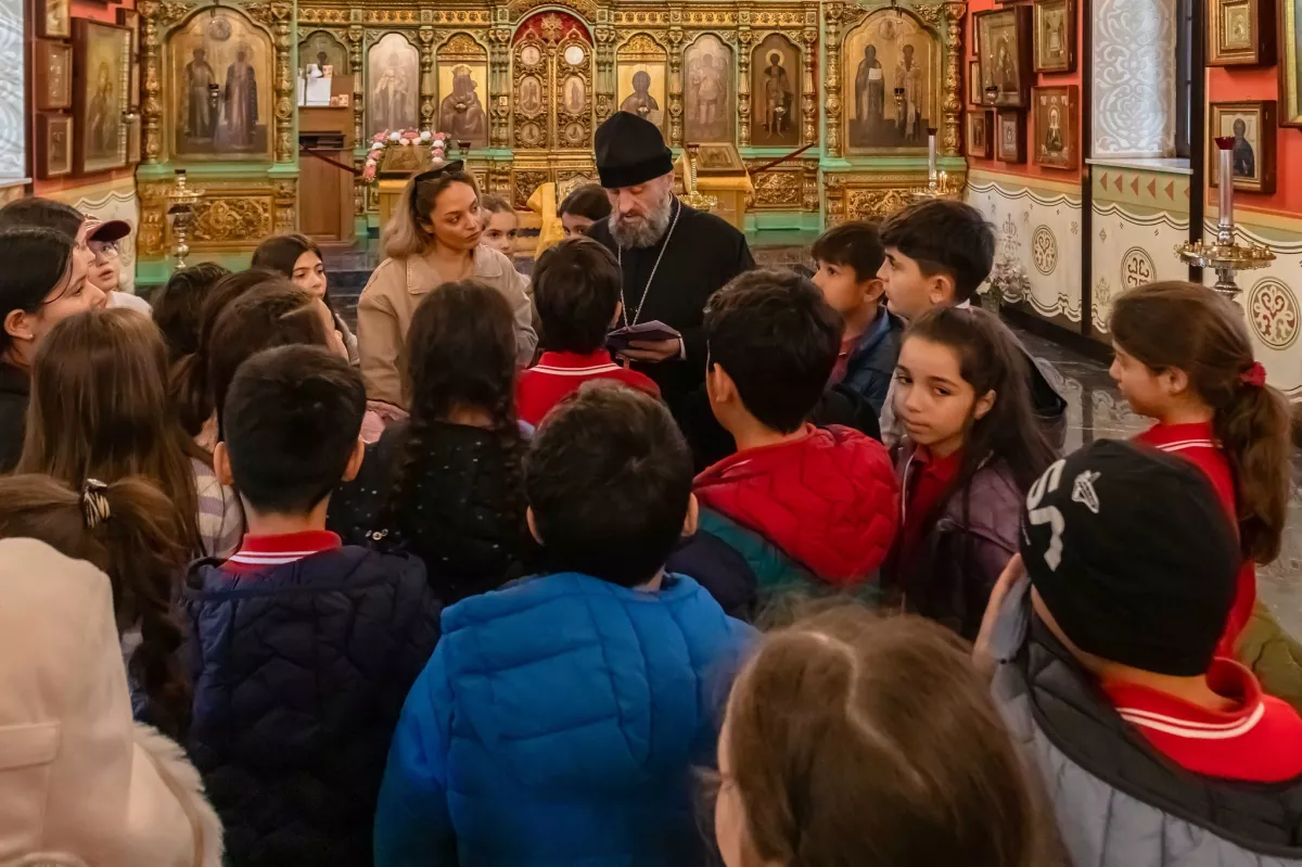 Учащиеся начальных и средних классов бакинской школы «Dünya» в сопровождении преподавателей и родителей посетили храм святого архангела Михаила Бакинской и Азербайджанской епархии Русской православной церкви.