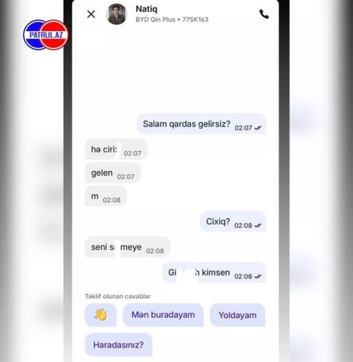 Водитель такси службы Bolt по имени Натиг (автомобиль марки BYD Gin Plus, госномер 77-SK-163) грубейшим образом ответил пассажирке.