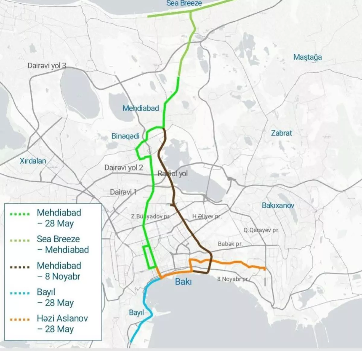 «Ведутся проектные работы по запуску трамвайной линии от поселка Мехдиабад в Бинагадинском районе Баку до станции метро «28 Мая» вдоль проспекта Азадлыг».