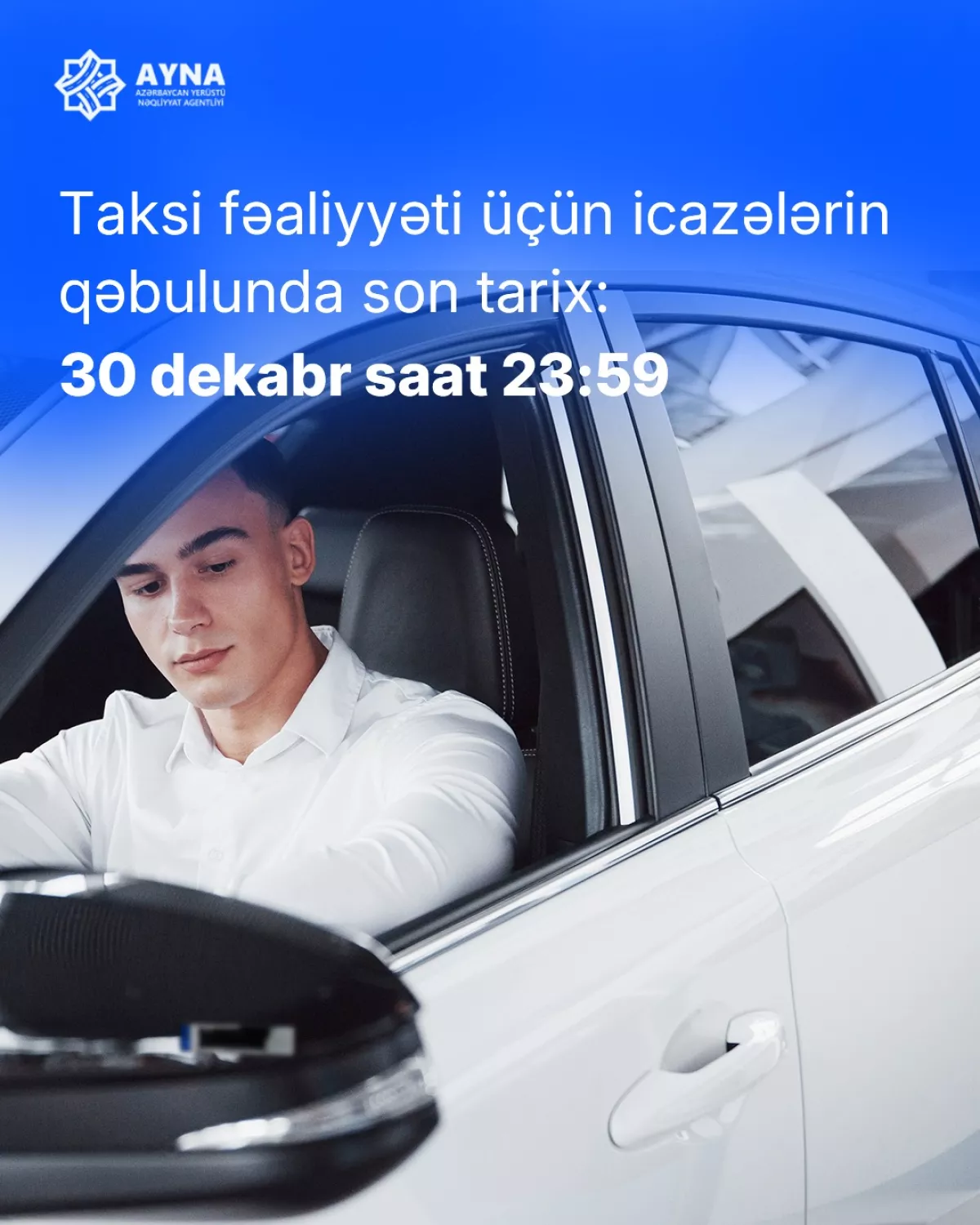 Как сообщили Caliber.Az в пресс-службе Агентства наземного транспорта Азербайджана (AYNA), заявления на получение разрешения и его дополнения (в виде индивидуального номерного знака) в сфере пассажирских перевозок - такси в Баку принимаются до 23:59 30 декабря 2025 года.