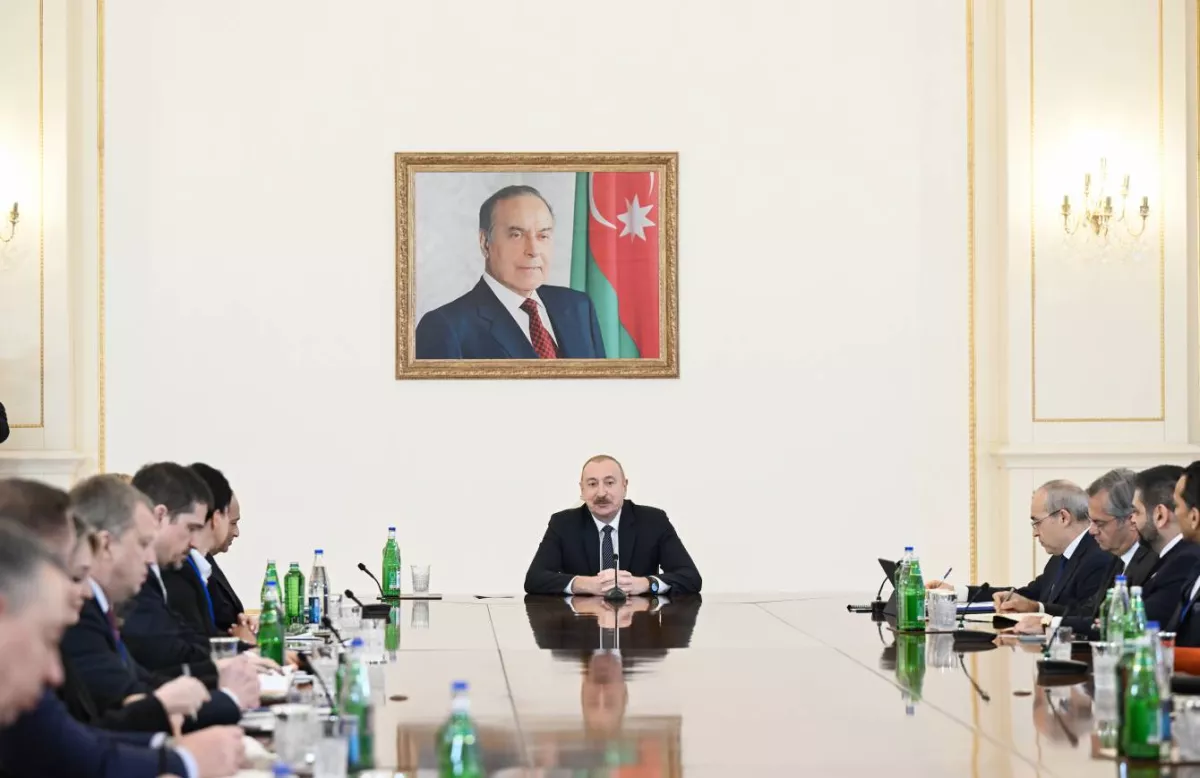 Глава государства подчеркнул преимущества географического положения Азербайджана на стыке Запада и Востока. Для раскрытия этого потенциала в стране создана емкая инфраструктура, включая нефте- и газопроводы, железные дороги и линии электропередачи. Наша страна полностью обеспечивает себя нефтью, газом, нефтепродуктами, продукцией нефтехимической промышленности и электроэнергией, а также экспортирует все перечисленное. Сегодня природный газ по трубопроводам поступает в шестнадцать стран мира, что выводит Азербайджан на первое место по географии поставок.
