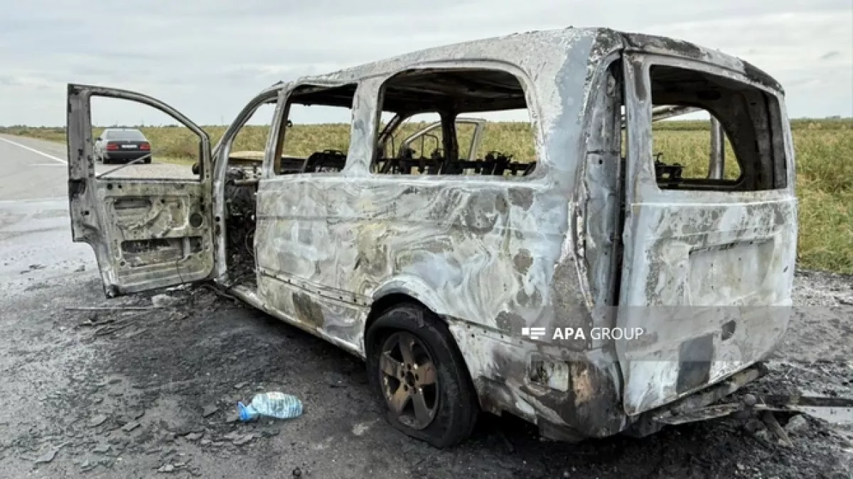 Близ села Мюсюслю Mercedes сгорел дотла ФОТО