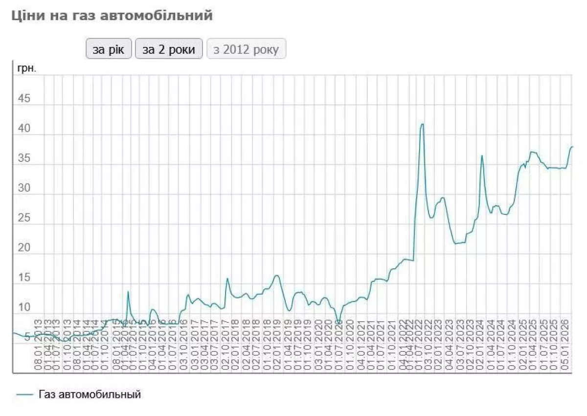 Более высокие цены фиксировались только в начале полномасштабной войны, когда на фоне паники, километровых очередей на АЗС и ограничений на продажу топлива по 10 литров в один бак автогаз стоил более 42 грн за литр.