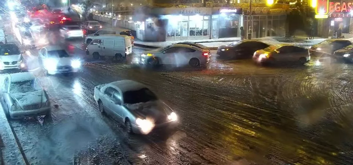 Cнегопад затруднил движение на некоторых улицах Баку ФОТО