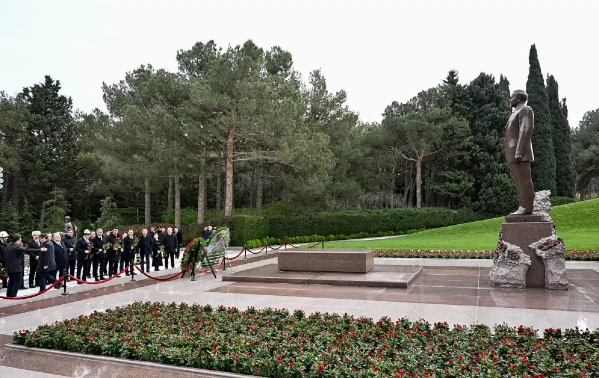 Как сообщает АЗЕРТАДЖ, сначала делегация почтила память Общенационального лидера нашего народа, архитектора и созидателя современного независимого Азербайджанского государства Гейдара Алиева, возложила венок и цветы к его могиле.