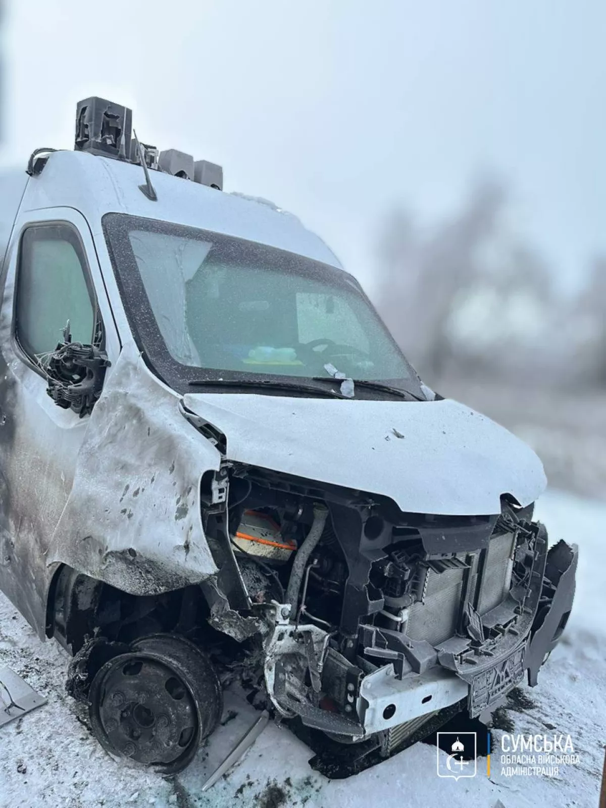 Дрон атаковал эвакуационный автомобиль полиции «Белый ангел» в Сумской области ФОТО