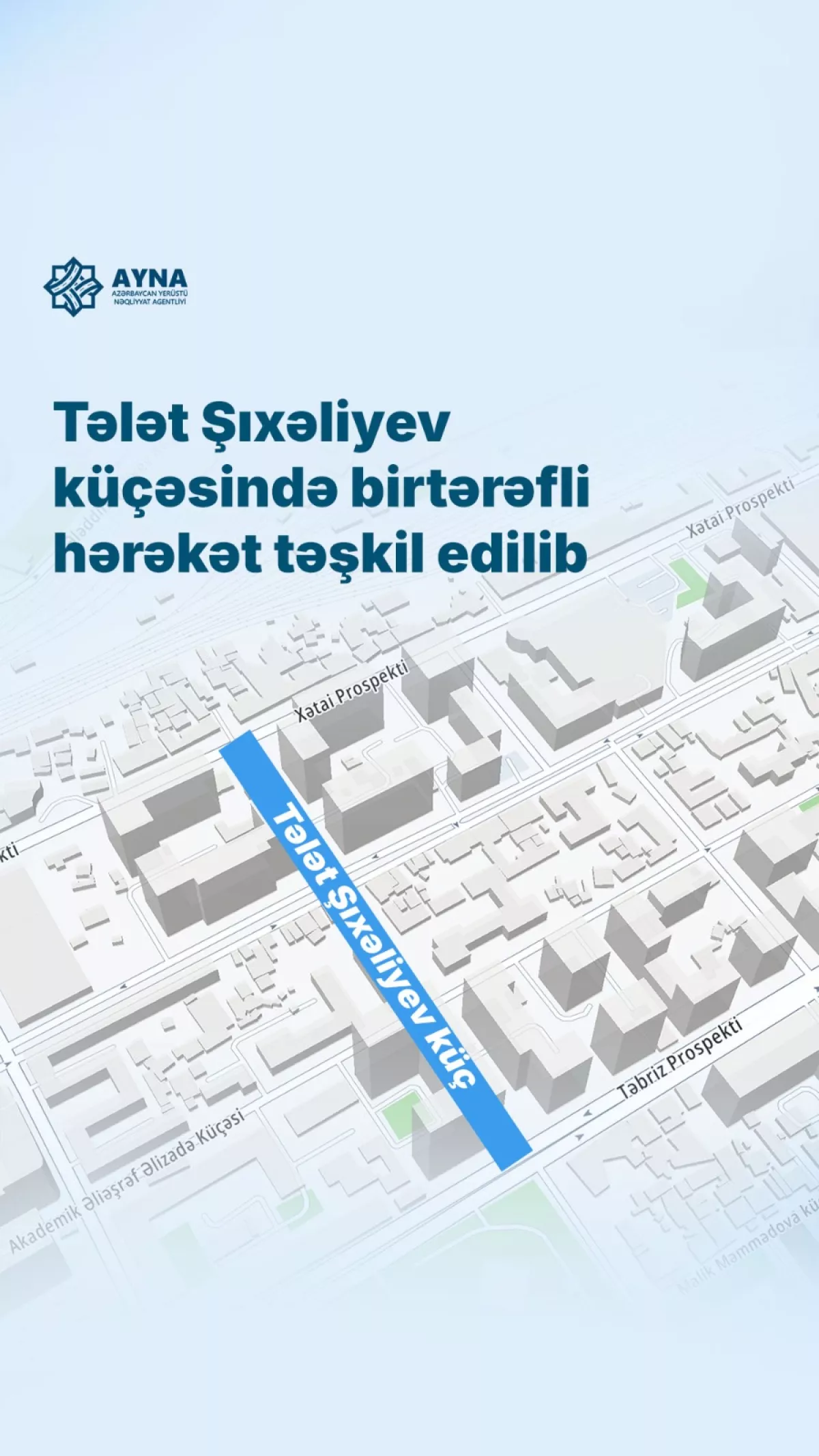 С учетом этих факторов, на участке дороги от проспекта Хатаи по направлению к улице Тебриз организуется одностороннее движение.