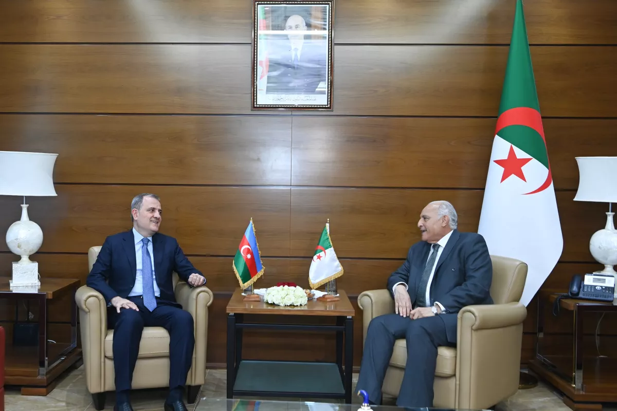 Tête-à-tête meeting between the Minister of Foreign Affairs of the Republic of #Azerbaijan🇦🇿 Jeyhun Bayramov and the Minister of State, Minister of Foreign Affairs, National Community Abroad and African Affairs of the People's Democratic Republic of #Algeria🇩🇿 Ahmed Attaf has… pic.twitter.com/K9NEEiiXW3