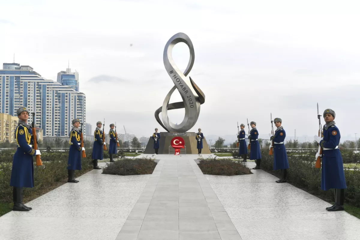 Как сообщает АЗЕРТАДЖ, здесь в честь гостя был выстроен почетный караул. Делегация возложила венок к памятнику Победы, почтила светлую память шехидов.
