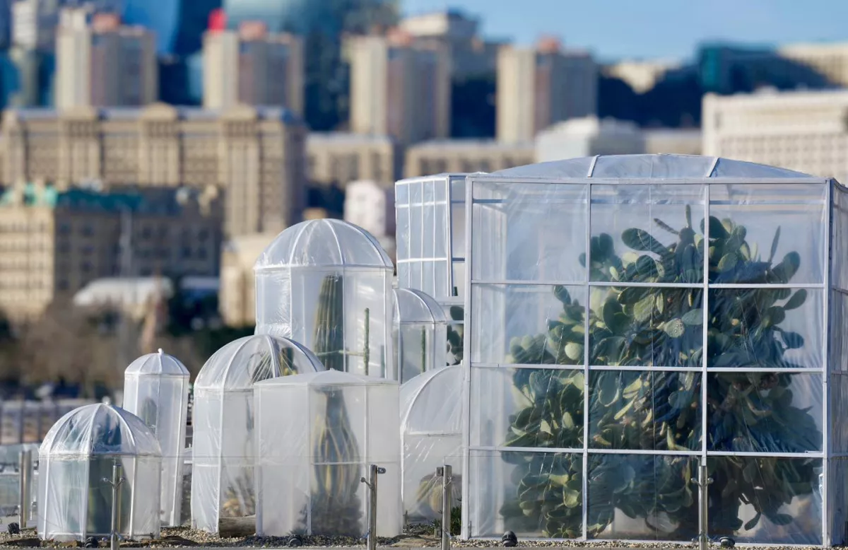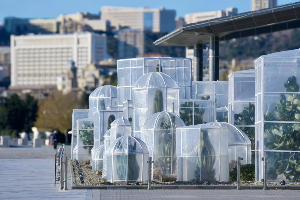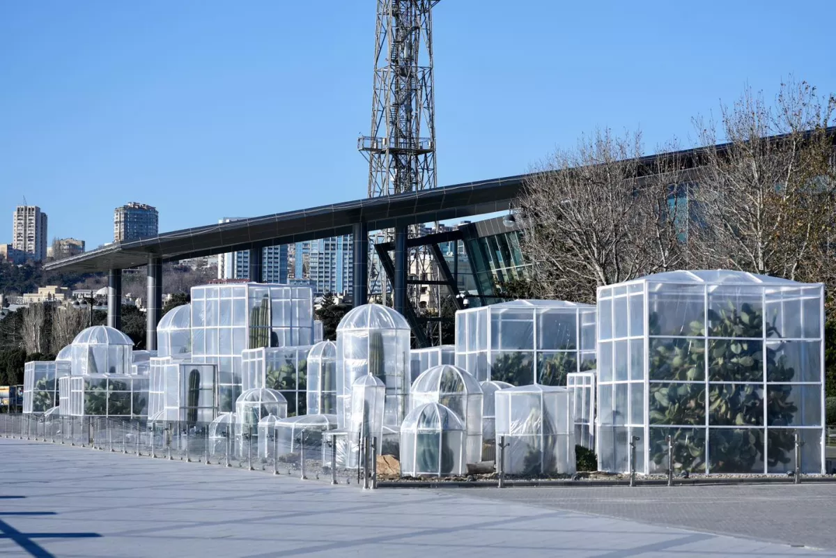 На Бакинском бульваре заблаговременно были установлены специальные защитные покрытия для кактусов и прочих экзотических растений.