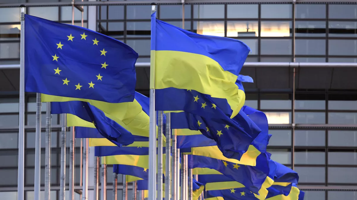 Указывается, что Украина находится в процессе подачи заявки на вступление в ЕС, хотя этот процесс тормозит Венгрия, которая оказывает этому сопротивление.