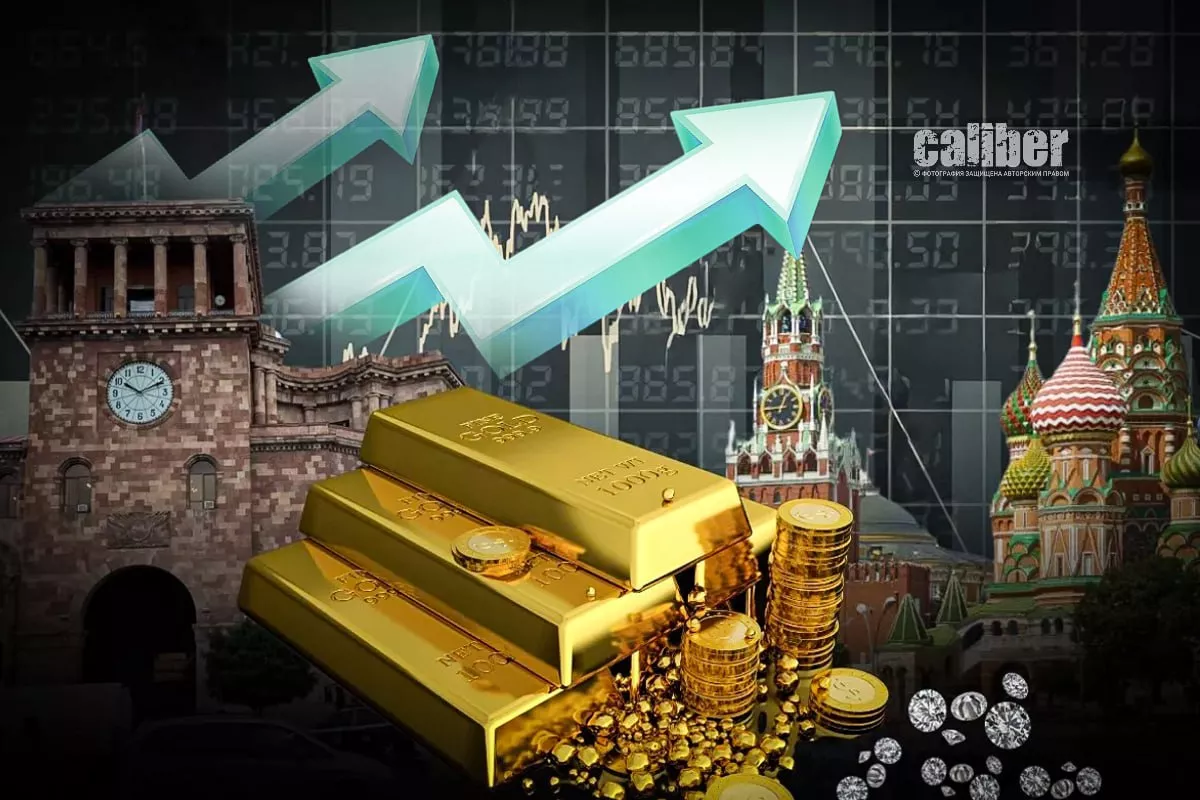 Не менее прибыльным бизнесом для армянских компаний стал импорт из России золота в слитках и в виде ювелирных украшений, а также бриллиантов и неограненных алмазов. При этом армянская ювелирная промышленность, по сути, не участвовала в повышении добавленной стоимости путем производства украшений из драгметаллов или огранки импортных бриллиантов. Ее роль сводилась к пробиванию клейма армянской пробирной палаты на российских изделиях, что автоматически выводило эту продукцию из-под санкционных ограничений. А далее практически весь объем российского золота и драгоценностей реэкспортировался в Объединенные Арабские Эмираты (ОАЭ) и отчасти в Гонконг, откуда в рамках взаиморасчетов в РА поступают крупные суммы наличных денег и ценных бумаг. В частности, уже в 2022 году в Армению было ввезено 89 тонн российского золота на сумму $5,2 млрд, а с начала 2023 года такие поставки составили 111 тонн на $6,2 млрд. Эта тенденция, несмотря на некоторое снижение динамики, продолжилась и в 2024 году. Так, только реэкспорт Армении в ОАЭ вырос почти в четыре раза — с $580 млн до $2,298 млрд.