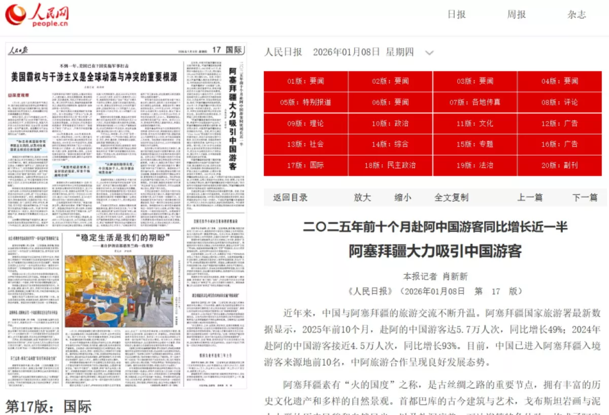 Официальное издание Коммунистической партии Китая – газета «Жэньминь Жибао» («Народная ежедневная газета») опубликовала статью под заголовком «Азербайджан активно привлекает китайских туристов».