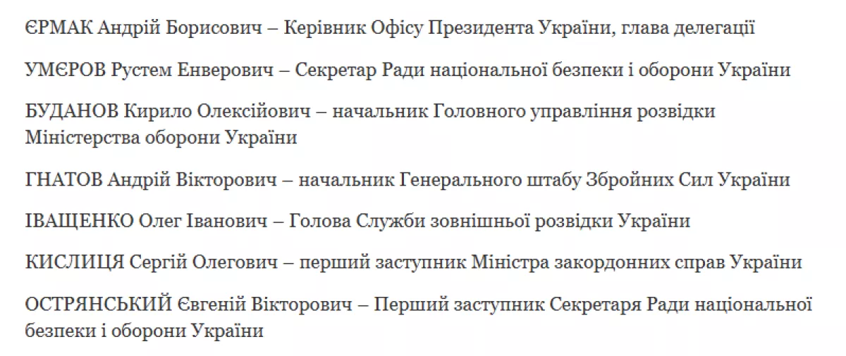 Об этом заявил секретарь Совета национальной безопасности и обороны Рустем Умеров. Вместе с тем на официальном сайте президента опубликован состав делегации от Украины для участия в переговорном процессе с США и другими международными партнерами Украины, а также с представителями РФ по достижению справедливого и устойчивого мира.