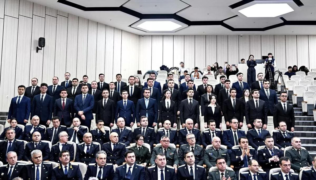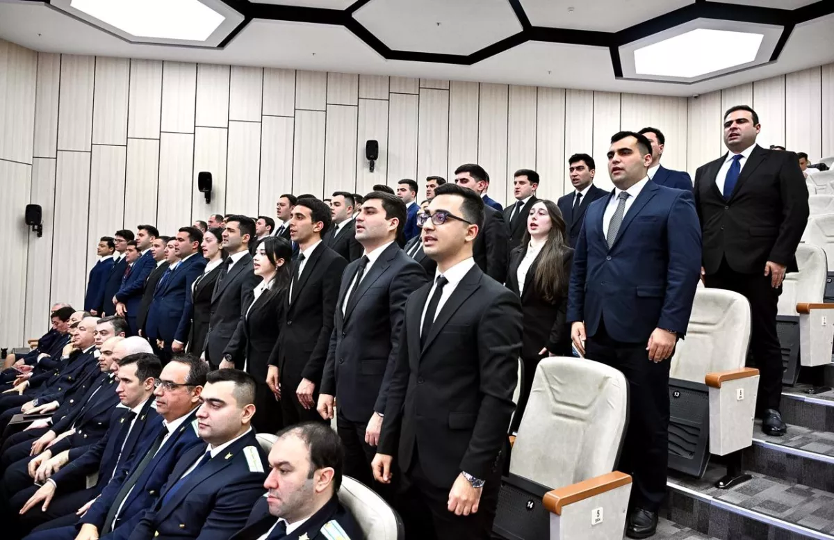 «Во время проходящей сейчас церемонии приняты на работу один ветеран Отечественной войны и один участник антитеррористической операции сентября 2023-го года», - подчеркнул Кямран Алиев.
