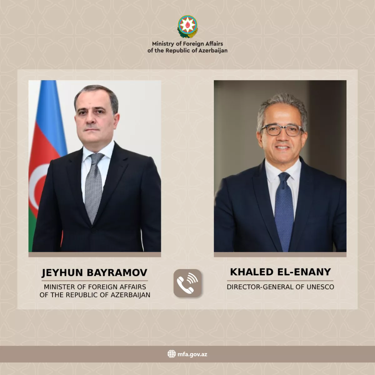 Сегодня состоялся телефонный разговор министра иностранных дел Азербайджана Джейхуна Байрамова с новоизбранным генеральным директором организации ООН по вопросам образования, науки и культуры (ЮНЕСКО) Халедом аль-Анани.