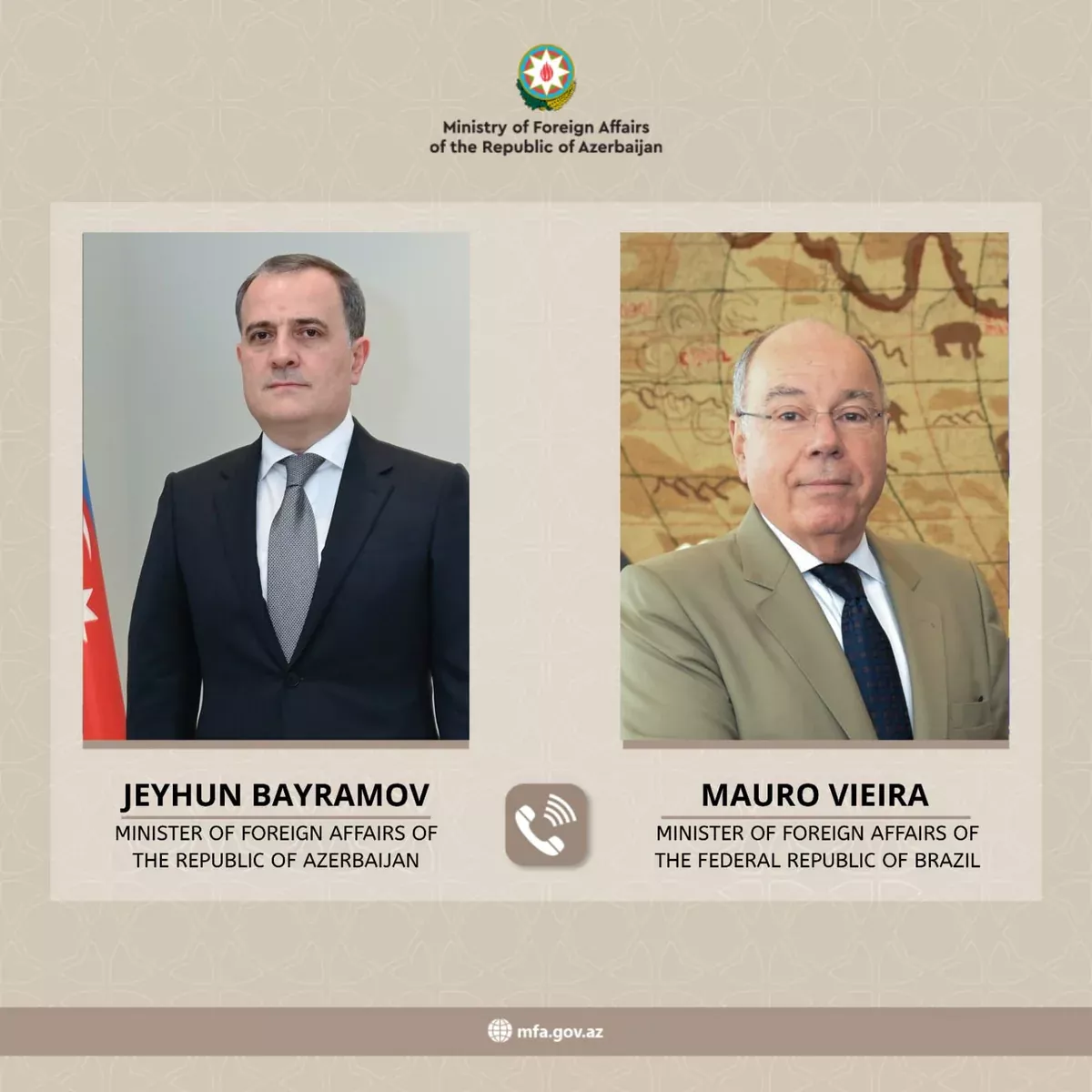 Министр иностранных дел Бразилии Мауро Виейра позвонил своему азербайджанскому коллеге Джейхуну Байрамову.