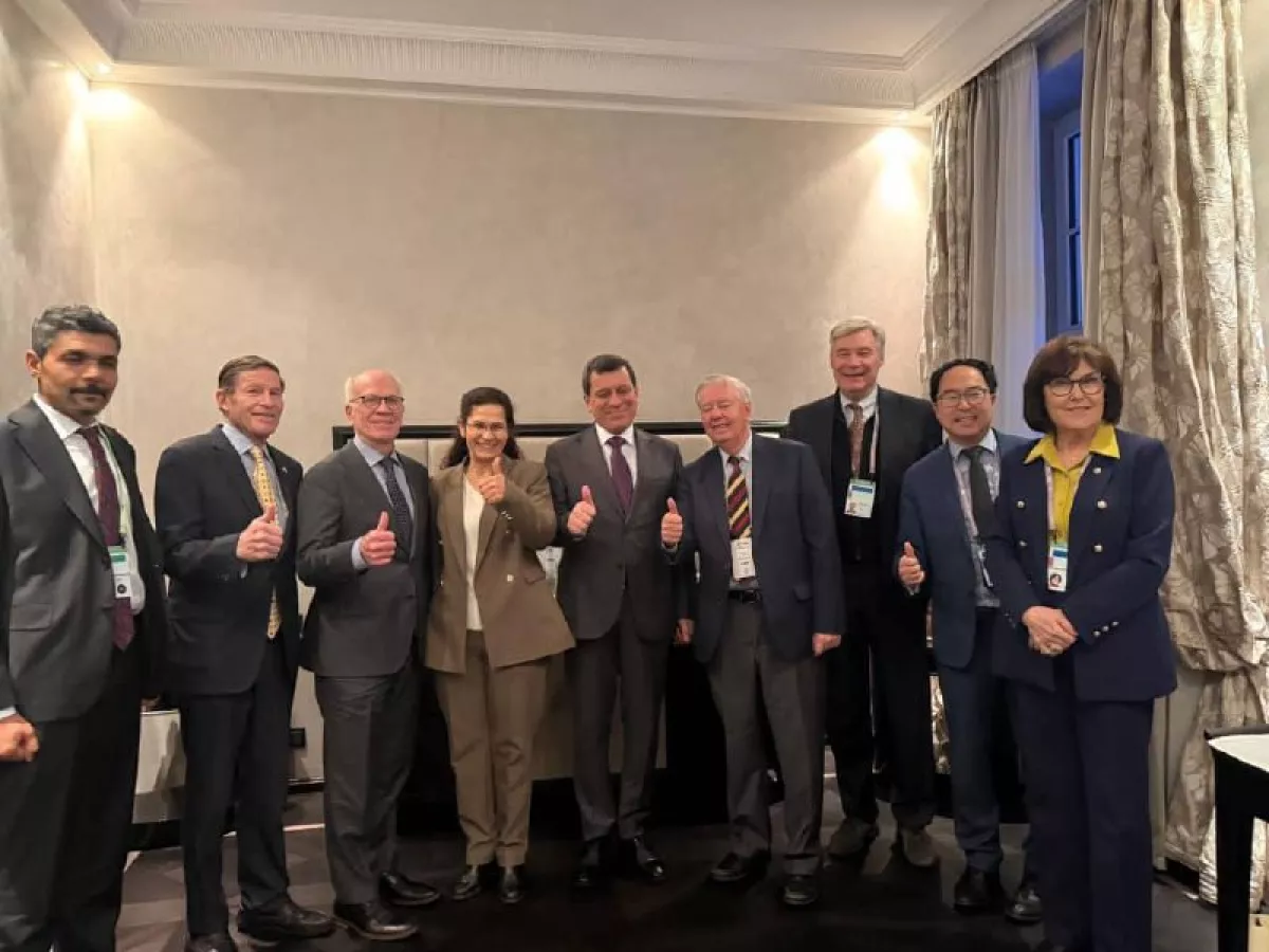 В делегацию Конгресса США, возглавляемую сенатором Линдси Грэмом, вошли сенаторы Шелдон Уайтхаус, Джеки Розен, Питер Уэлч и Энди Ким.