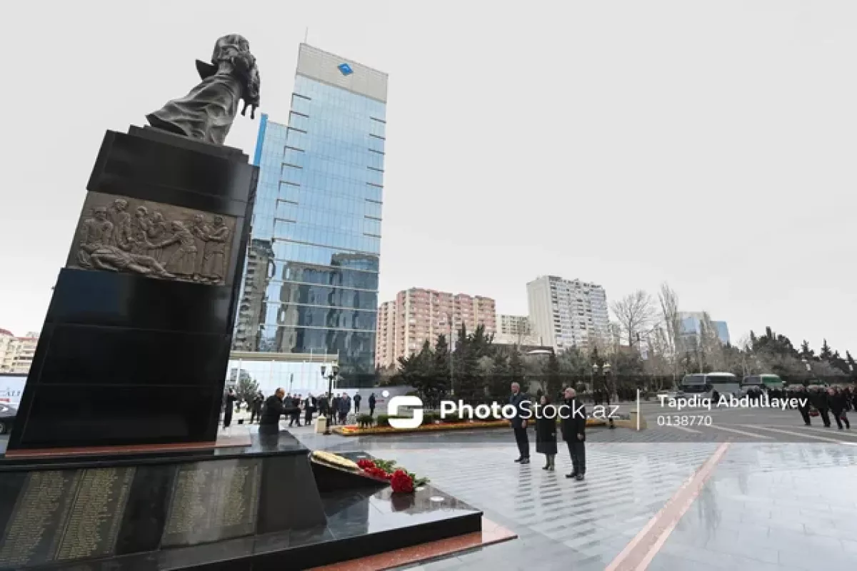 В связи с 34-й годовщиной Ходжалинской трагедии государственные чиновники продолжают посещать памятник Ana harayı («Крик матери») в Баку.