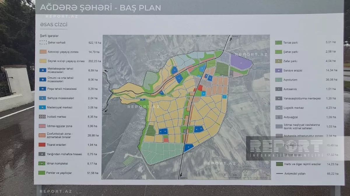 Кроме того, в городе планируется создание террасного парка, бульвара вдоль реки, агротуристических, промышленных и логистических зон. Наряду с генеральным планом, также разработаны детальные решения по территории города Агдере, которая будет реконструирована на первом этапе. Планируется, что площадь жилого фонда города составит 420 тысяч квадратных метров.