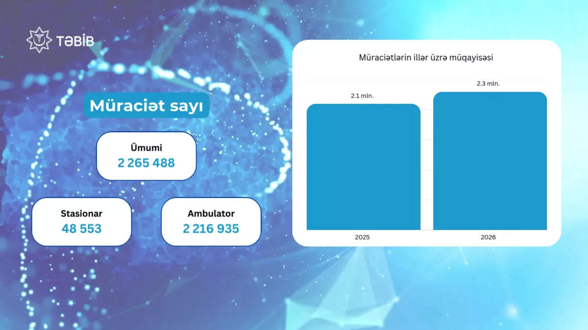 В январе 2026 года Объединение по управлению медицинскими территориальными подразделениями (TƏBİB) оказало почти 8 миллионов услуг - 7 727 958, из них 1 074 206 стационарных, 6 653 752 - амбулаторных.