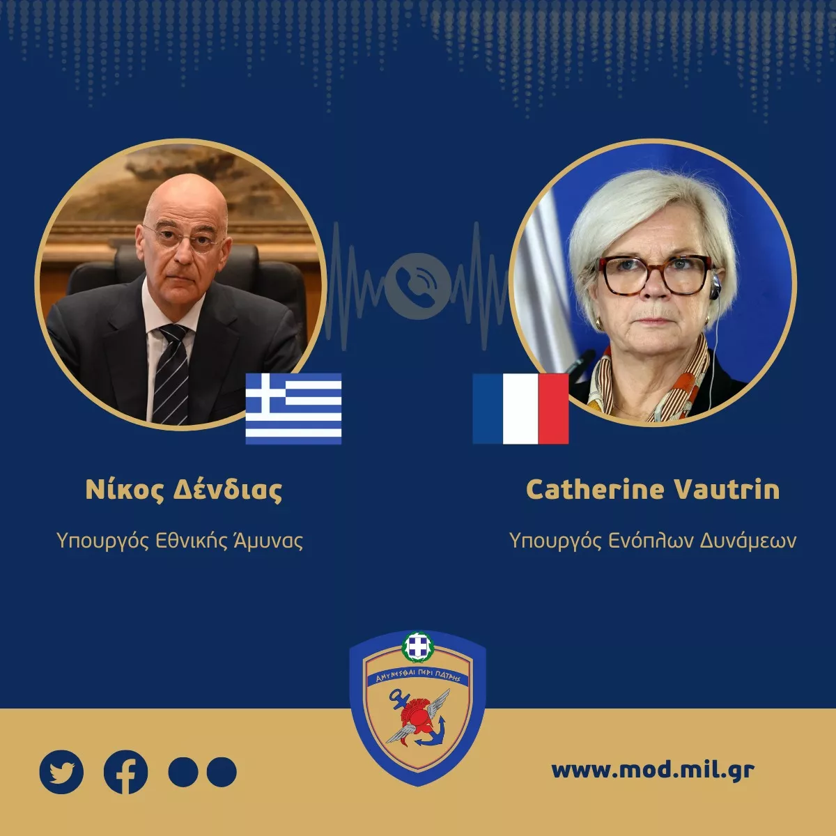 Министр обороны Греции Никос Дендиас провел длительный телефонный разговор с министром вооруженных сил Франции Катрин Вотрен в рамках регулярных консультаций между странами.
