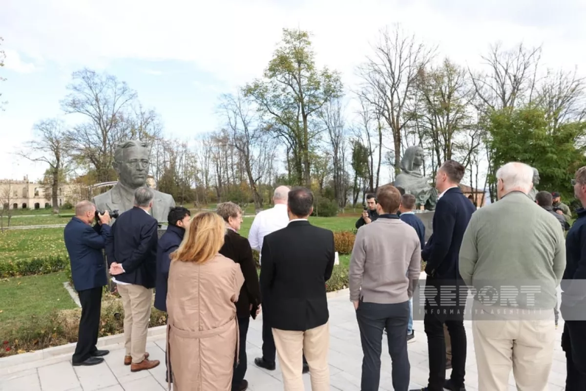 Международные путешественники из восьми стран осмотрели памятники на центральной площади в Шуше.
