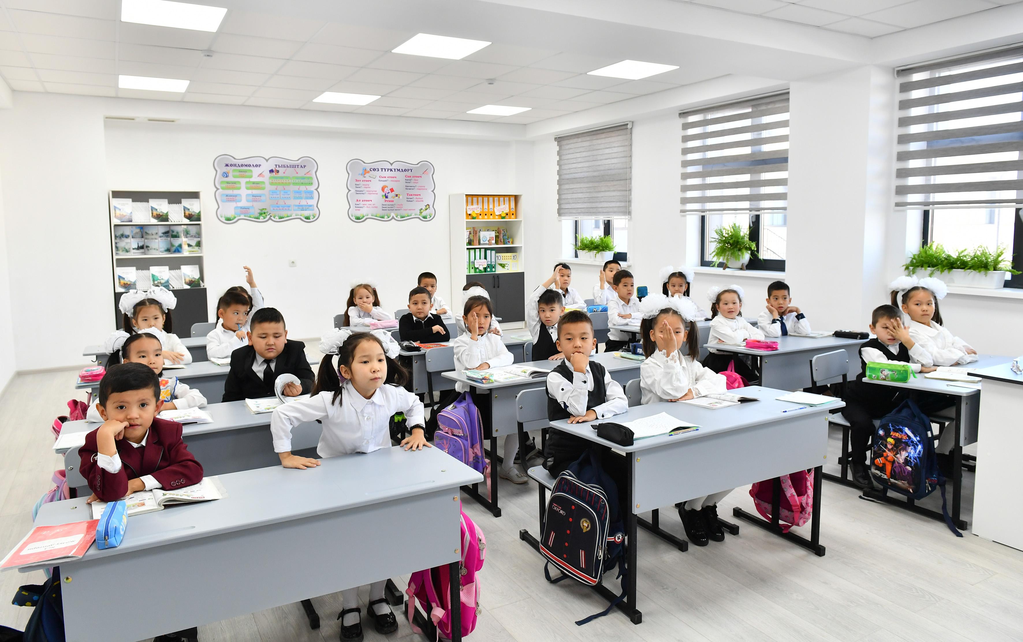 Затем Президент Ильхам Алиев и Президент Садыр Жапаров ознакомились со школой.