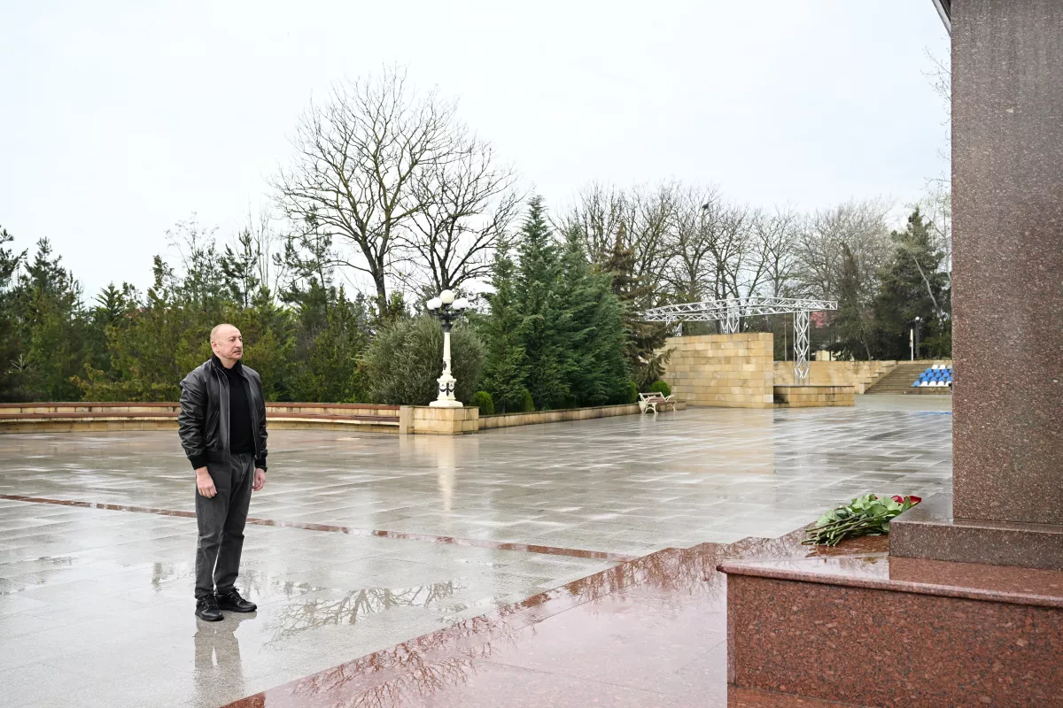 Как сообщает АЗЕРТАДЖ, глава государства посетил установленный в центре города Шамахы памятник Общенациональному лидеру нашего народа Гейдару Алиеву.