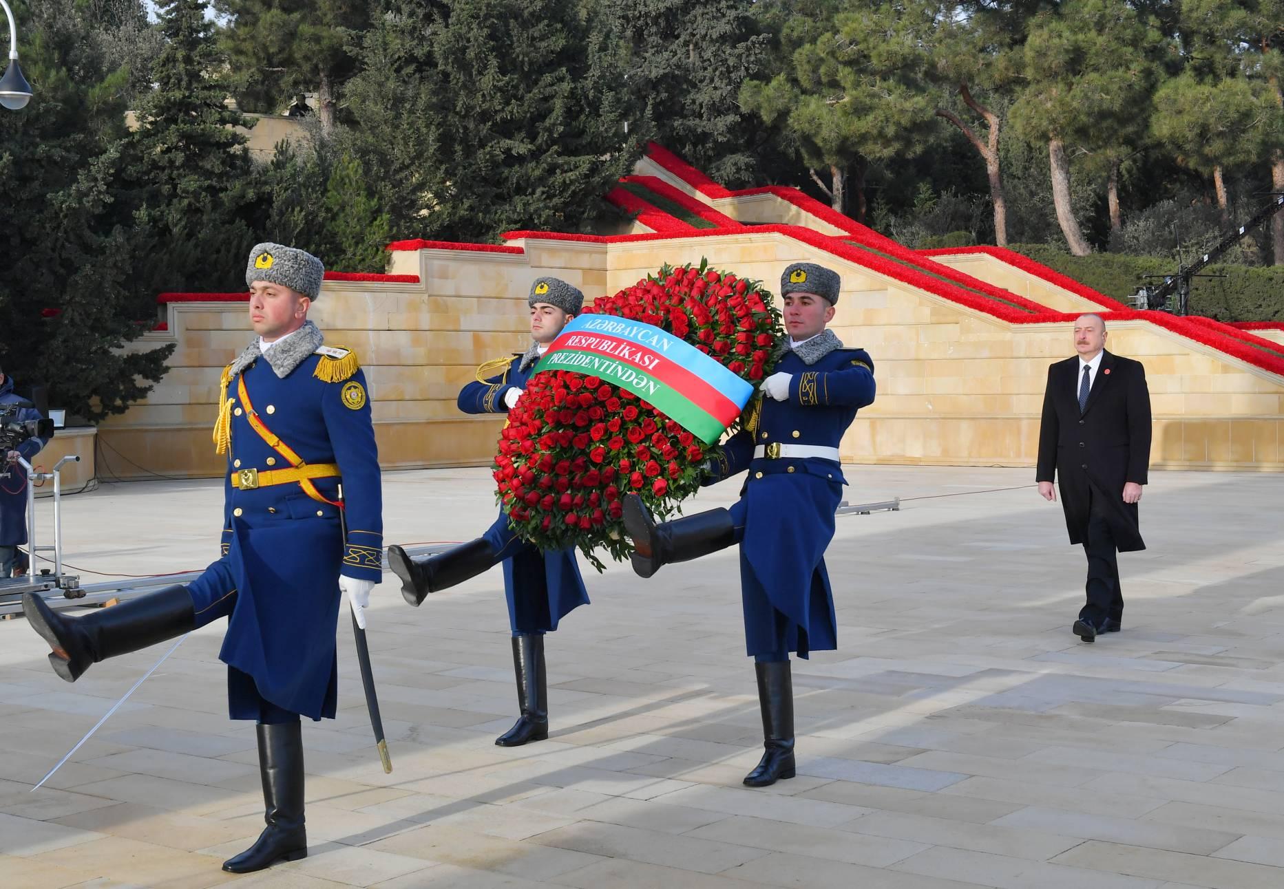 Глава государства почтил память погибших за свободу нашей страны. Президент Ильхам Алиев возложил венок к мемориалу «Вечный огонь». Прозвучал государственный гимн.