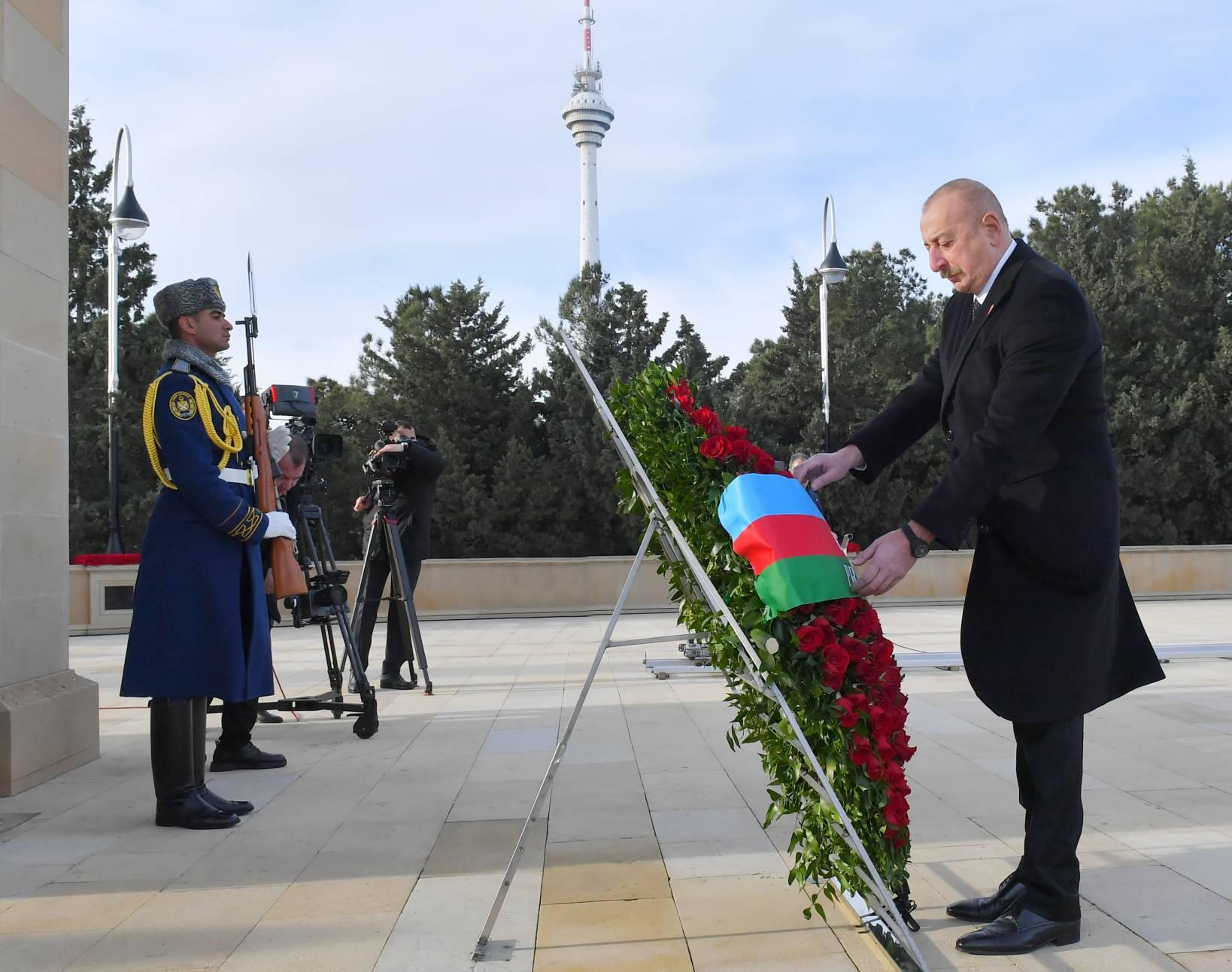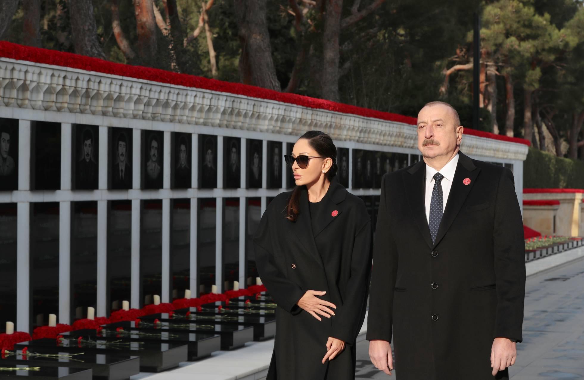 В связи с 34-й годовщиной расправы, учиненной советской империей в Баку, 20 января – в День всенародной скорби президент Азербайджана Ильхам Алиев и первая леди Мехрибан Алиева посетили Шехидляр хиябаны.
