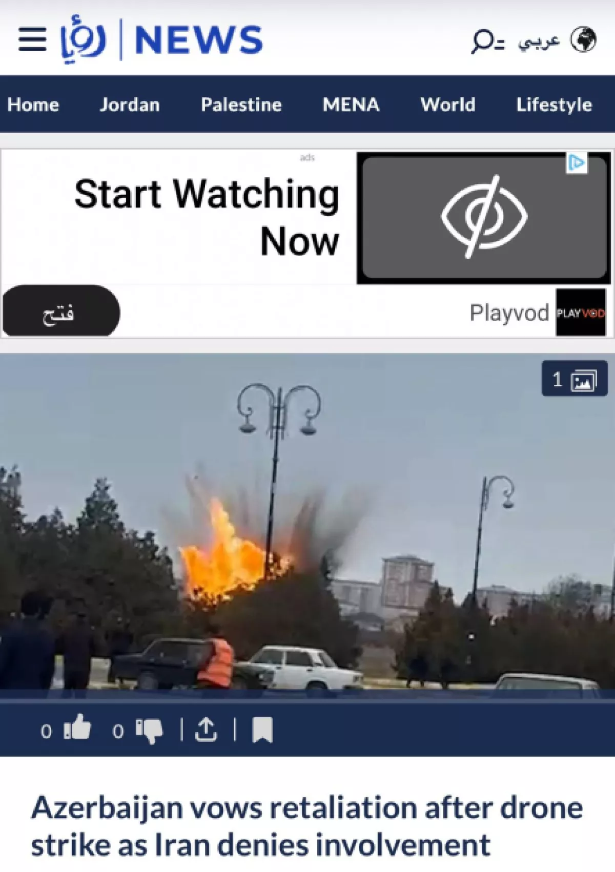 Иорданские СМИ активно обсуждают атаку иранских дронов на Нахчыван ФОТО
