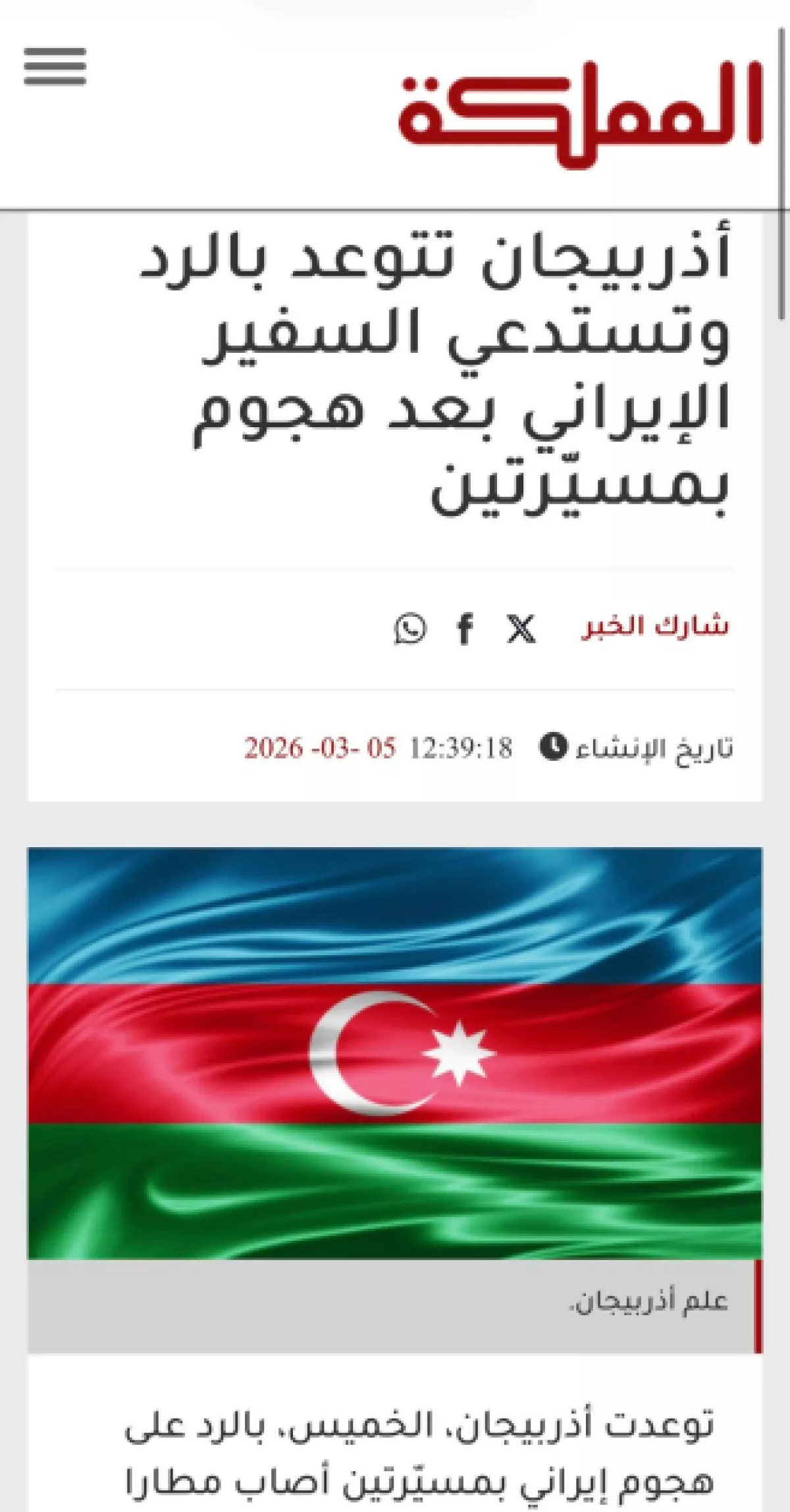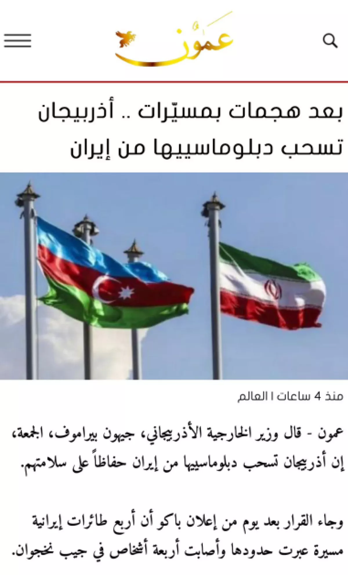 Дроновая атака Ирана на аэропорт, здание школы и другие гражданские объекты в Нахчыване 5 марта, а также выступление в этой связи Президента Азербайджана Ильхама Алиева на заседании Совета безопасности находятся в центре внимания ведущих медиа-органов Иордании.