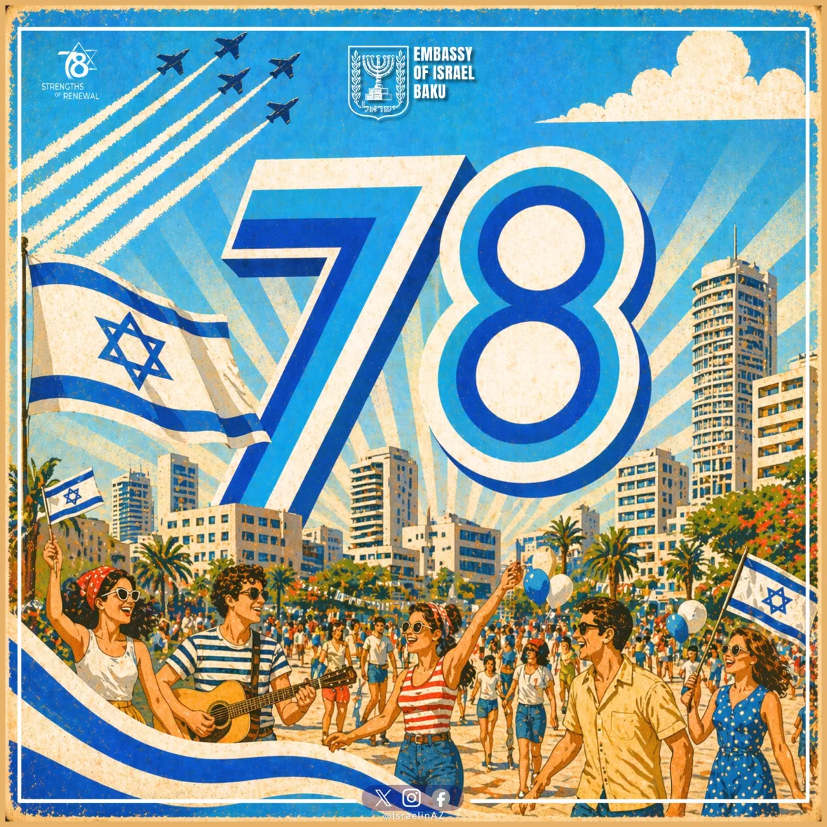 «Из Баку мы с гордостью отмечаем 78-ю годовщину независимости Израиля и выражаем искреннюю надежду на то, что дружба и сотрудничество между Израилем и Азербайджаном будут и впредь только укрепляться. С Днем независимости, Израиль!» — говорится в публикации.