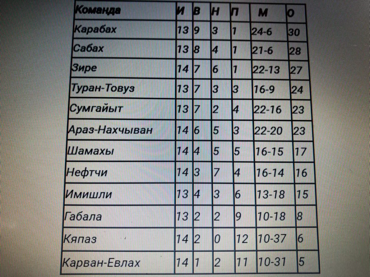 А вот судьба самого чемпионата уже фактически предопределена. Ведь несмотря на то, что лидер первенства – агдамский «Карабах» потерял два очка при встрече с «Зиря» (1:1), это никак не отразилось на его единоличном властвовании. Подопечные Гурбана Гурбанова на два очка опережают идущий вторым «Сабах», и на семь – замыкающий шестерку сильнейших «Араз-Нахчыван». В этой же шестерке твердо и уютно расположились «Зиря», «Туран Товуз» и «Сумгайыт». И даже самый заядлый оптимист не сможет отрицать, что именно между этими командами, расположенными аккурат в первой половине турнирной таблицы, пойдет как борьба за медали, так и за место в еврокубках.