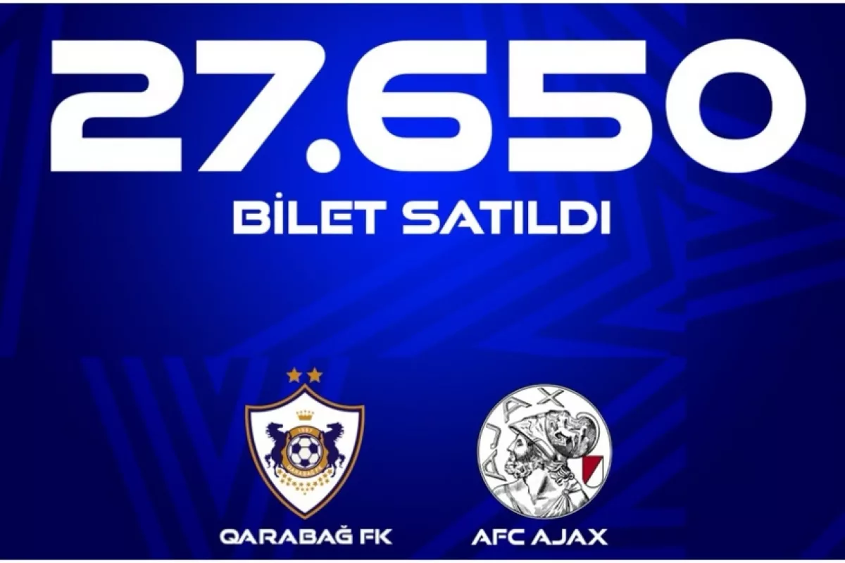 На матч VI тура общего этапа Лиги чемпионов УЕФА между азербайджанским клубом «Карабах» и нидерландским «Аякс» уже продано 27 650 билетов.
