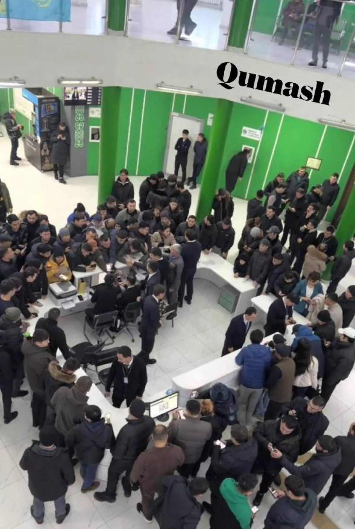 Как передает Caliber.Az со ссылкой на казахстанские СМИ, на видеокадрах видно, что людей собралось так много, что очередь образовалась на улице за дверями учреждения.