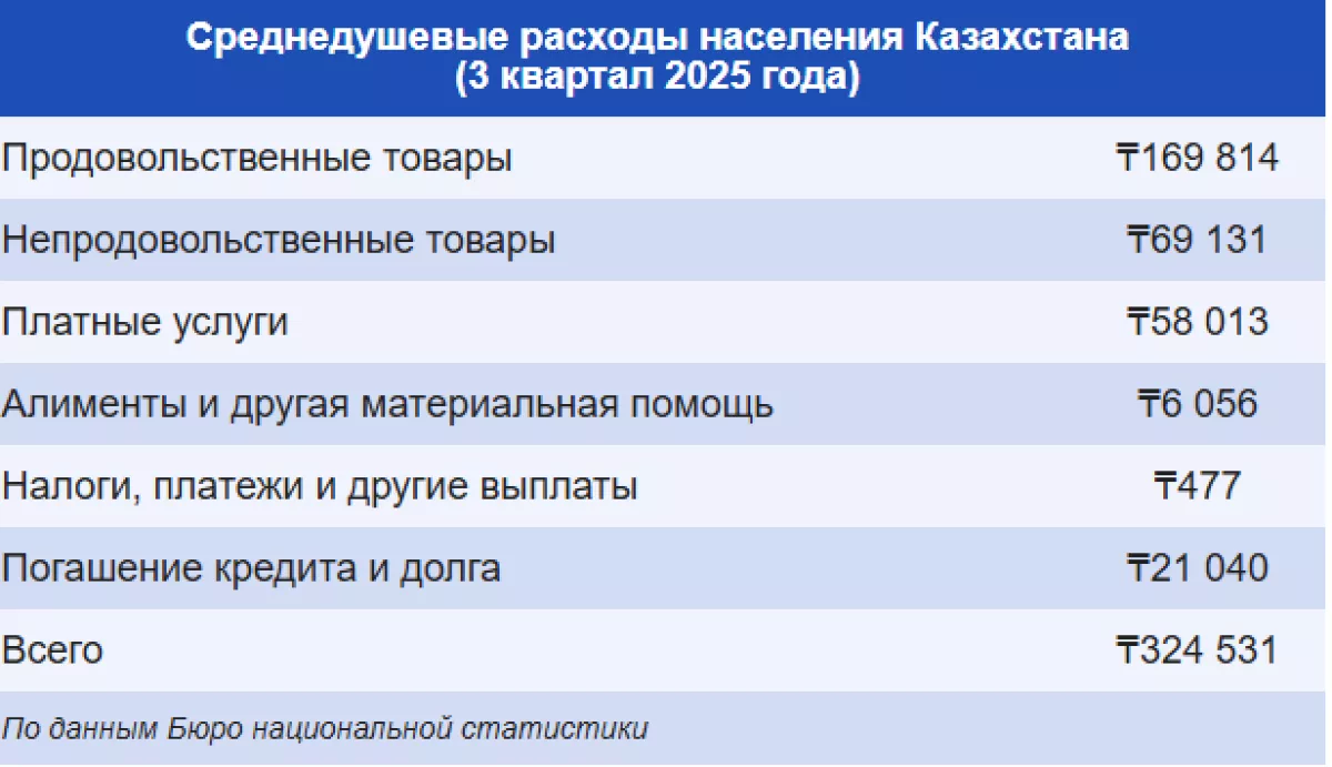 Расходы к этому времени достигли 324 531 тенге, то есть 108 177 тенге в среднем на человека в месяц – это сразу на 4,29% больше, чем было три месяца назад.