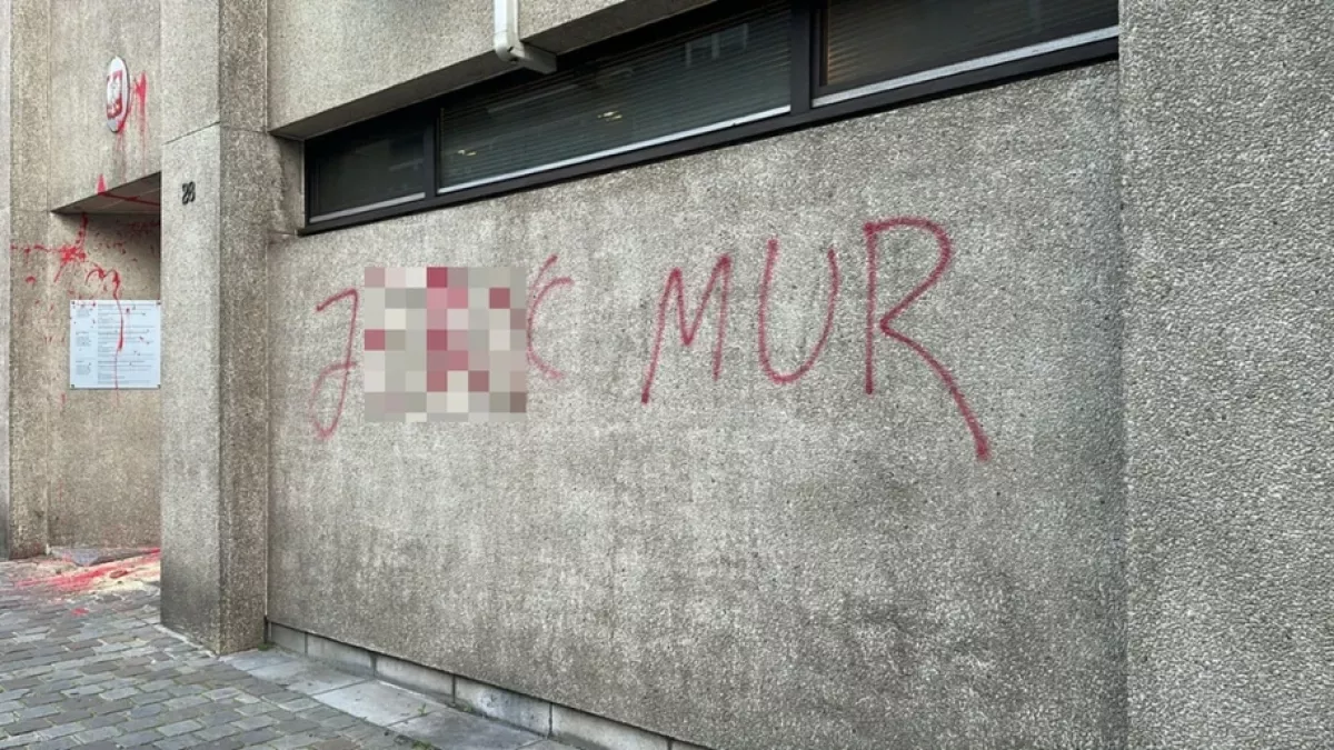 В Брюсселе неизвестные облили красной краской здание консульского отдела посольства Польши, нанесли на фасад нецензурные лозунги, а перед входом разбросали собачьи экскременты.