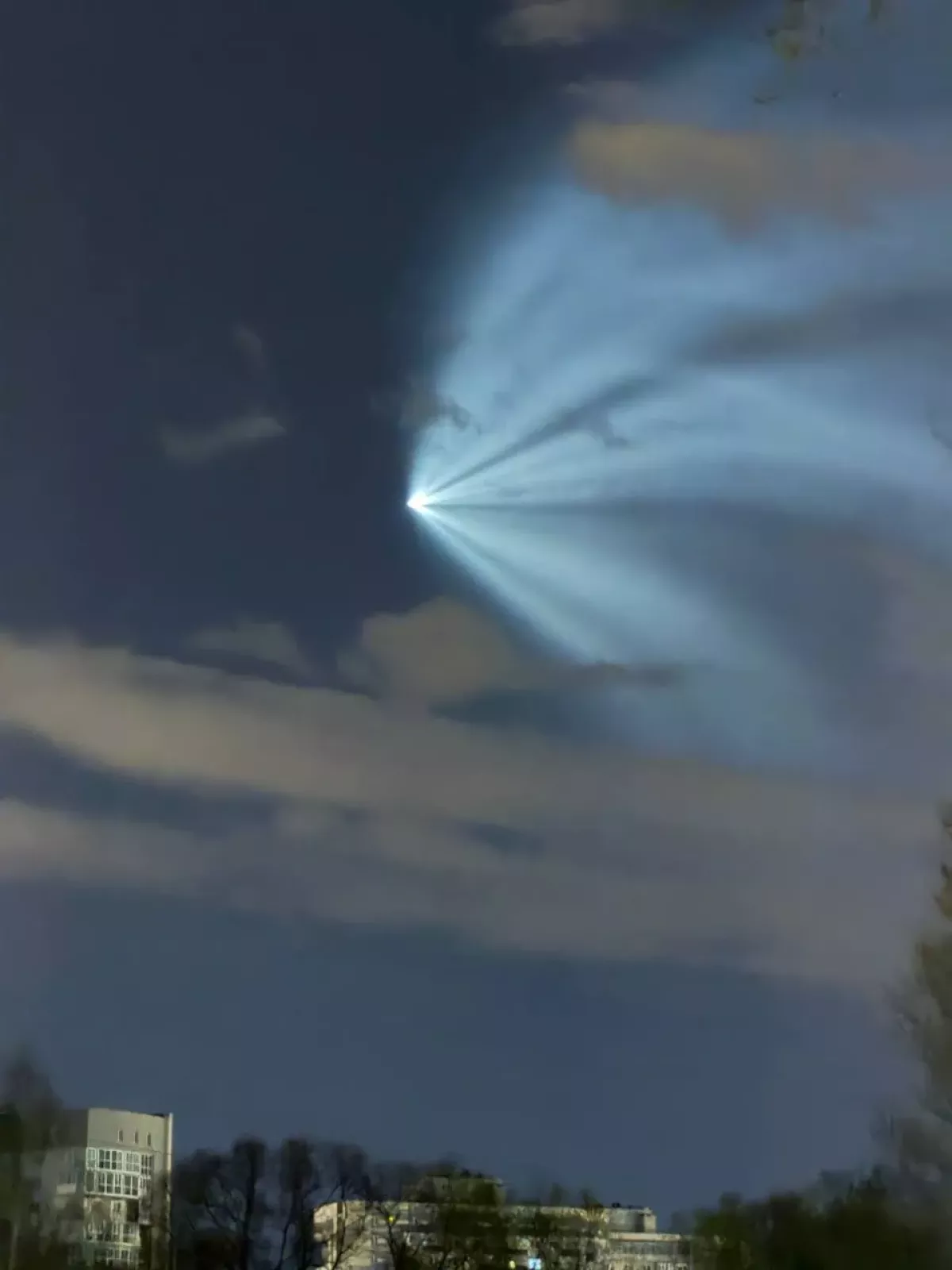 Световые лучи появились в небе над Санкт-Петербургом и Ленинградской областью. Видео опубликовали местные жители.