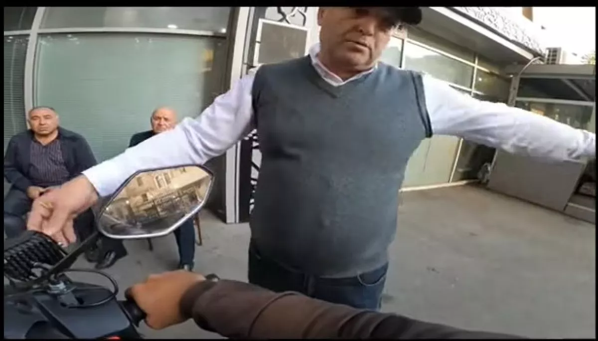 В одном из бакинских дворов произошла скандальная стычка между мотоциклистом – курьером службы доставки и охранником здания.