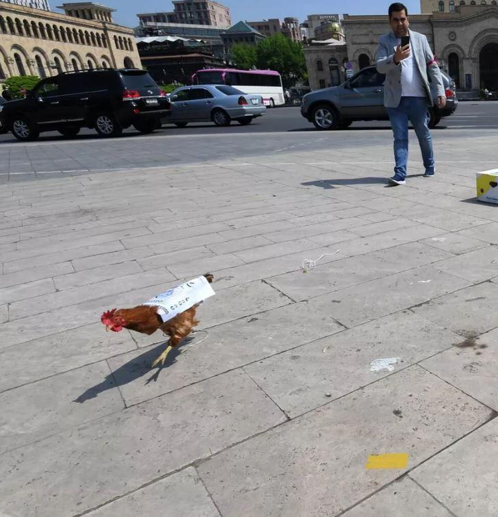 Активисты выпустили кур с наклеенными на них фотографиями Никола Пашиняна и датой 8.05.2018 (именно тогда Пашинян стал премьером) под песню Пипо Франко «Ки-ки-ки, ко-ко-ко» в центре Еревана. Так они решили отметить День гражданина, учрежденный властями Армении.
