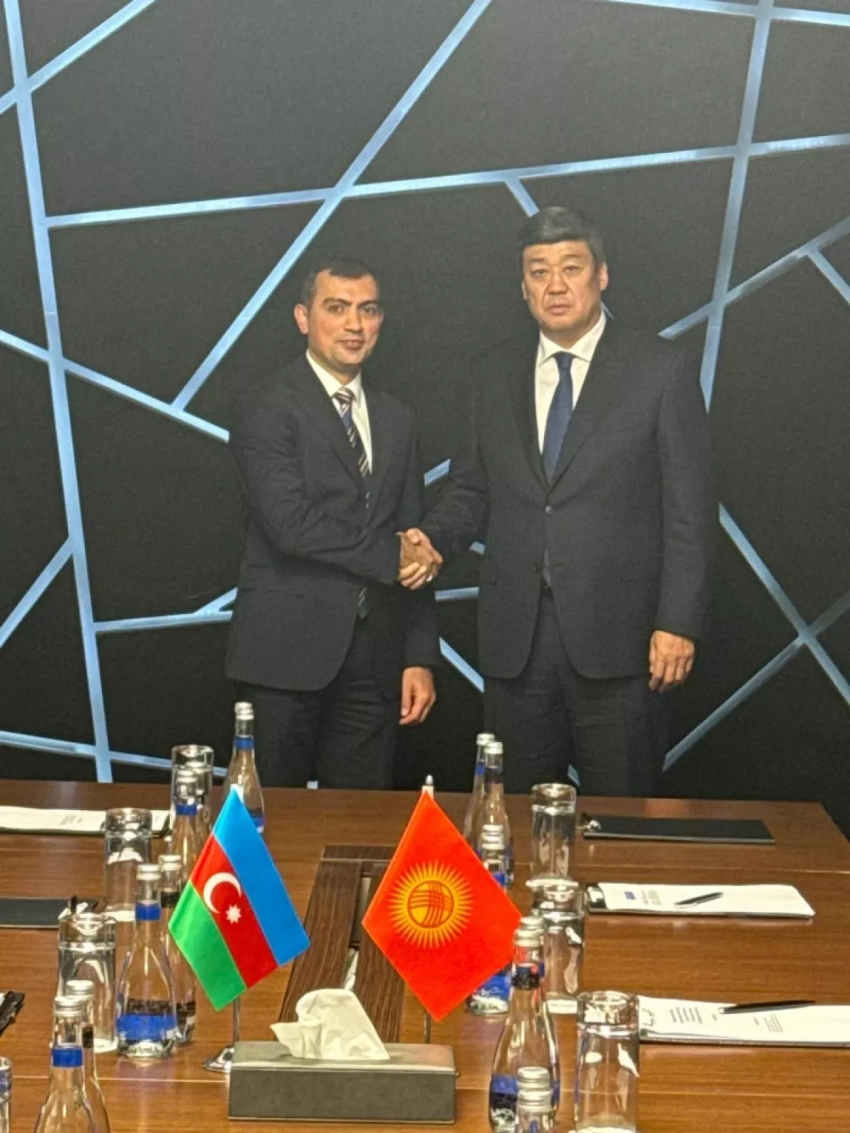 В ходе рабочего визита в столицу Азербайджана, министр сельского хозяйства Кыргызстана Бакыт Торобаев встретился с исполняющим обязанности председателя совета директоров «Azərkosmos» Дунаем Батирхановым.