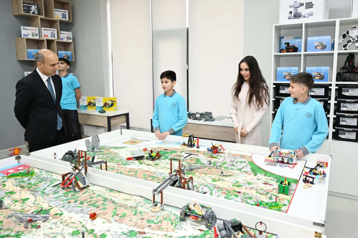 Лейла Алиева и Алена Алиева побывали в центре STEAM, действующем в Гянджинском лицее с углубленным изучением физики, математики и информатики и полной средней школе номер 37 города Гянджа.