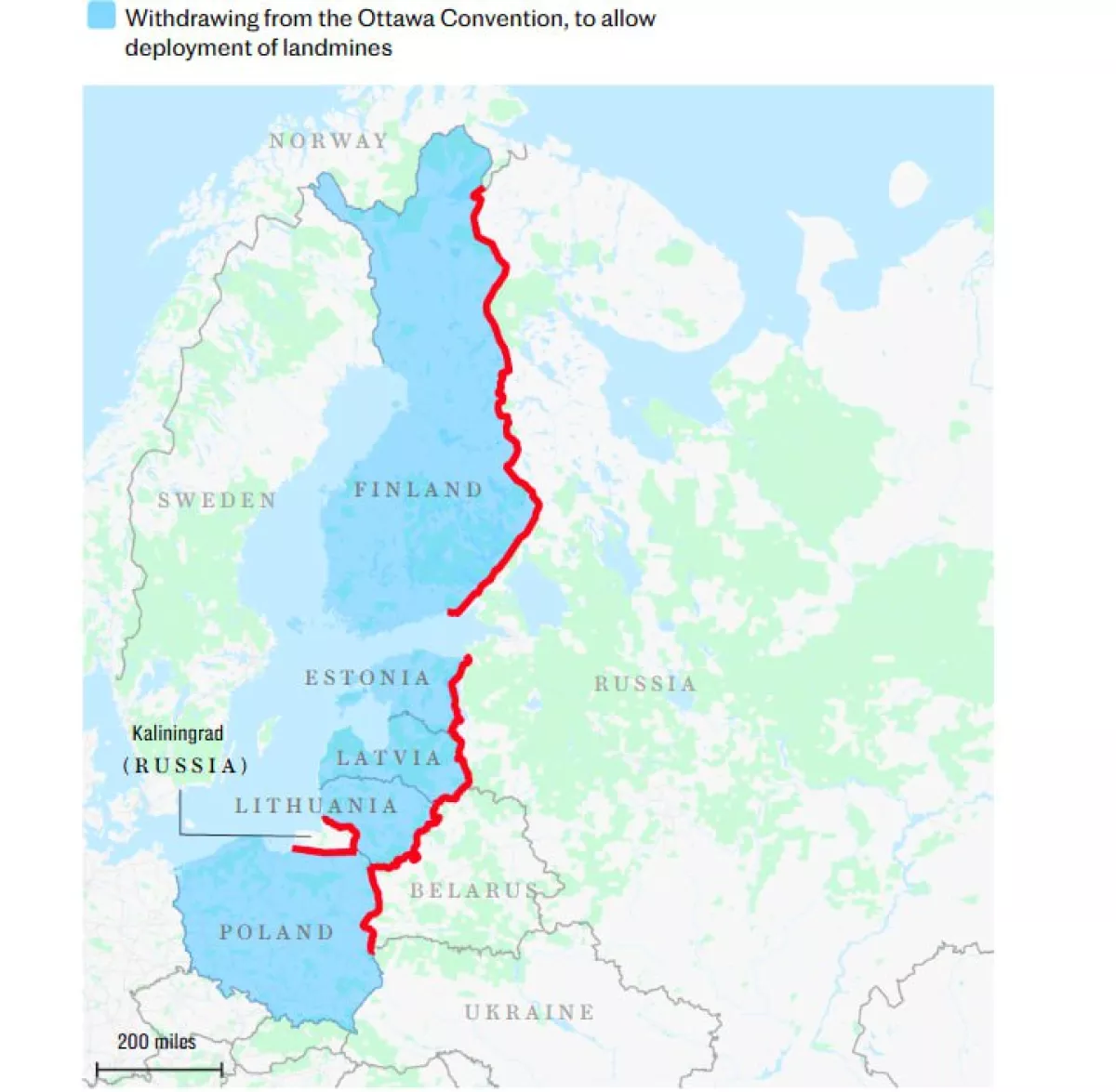 Ранее британская газета The Telegraph сообщала, что Финляндия, Литва, Латвия, Эстония и Польша рассматривают возможность минирования границ с Россией и Белоруссией в рамках усиления мер безопасности и сдерживания.