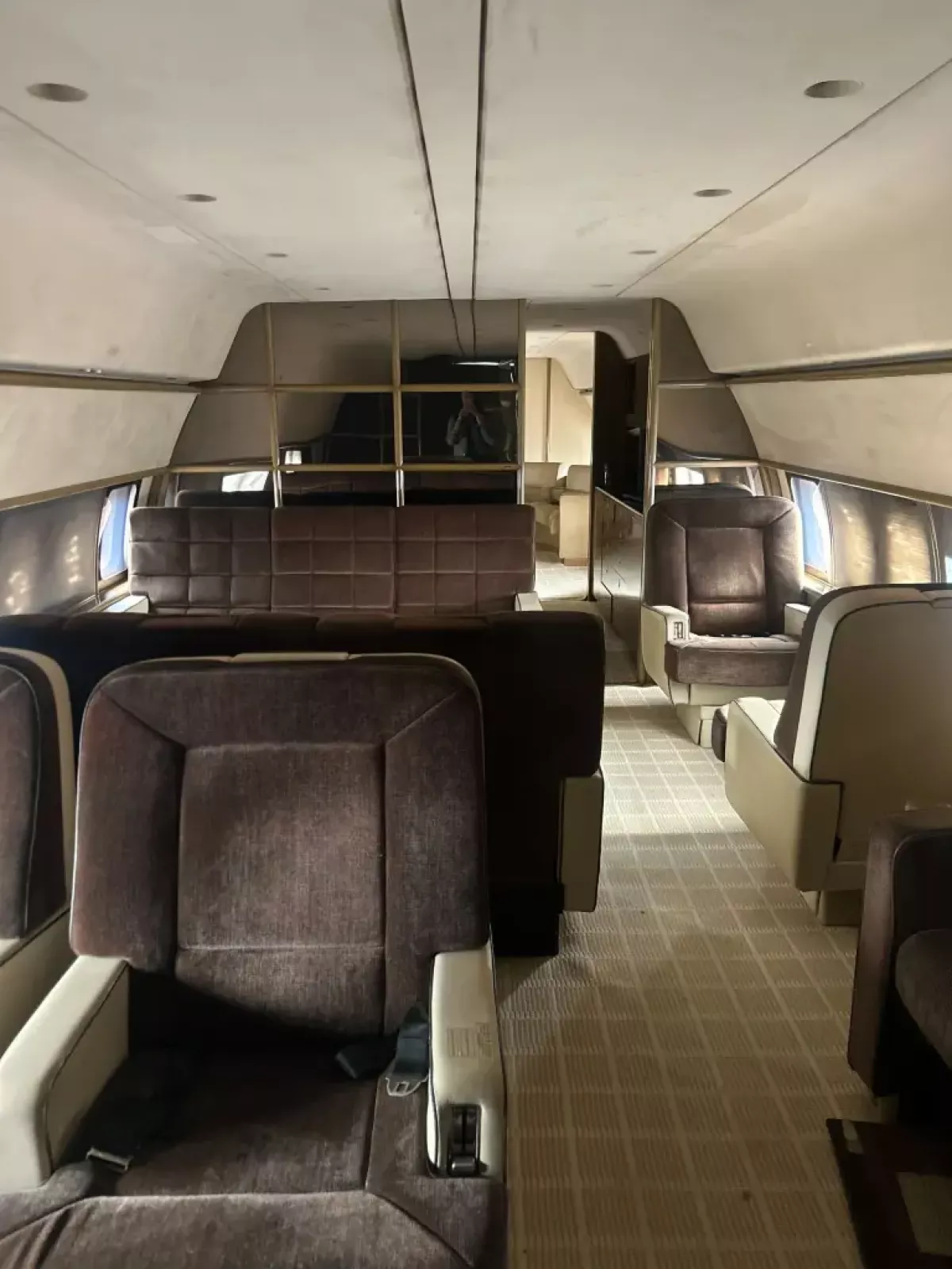 Согласно предоставленным изданием снимкам, корпус и интерьер подверглись значительной коррозии и разрушению из-за длительного хранения под открытым небом. Журналисты, получившие доступ к самолёту, также описали характерный «тошнотворный запах плесени». В салоне сохранились элементы прежней планировки — спальня, несколько гостиных зон, кухня и ванные комнаты.