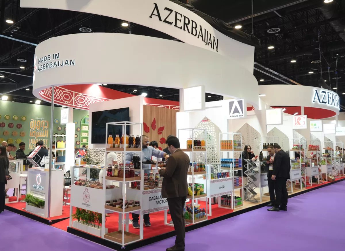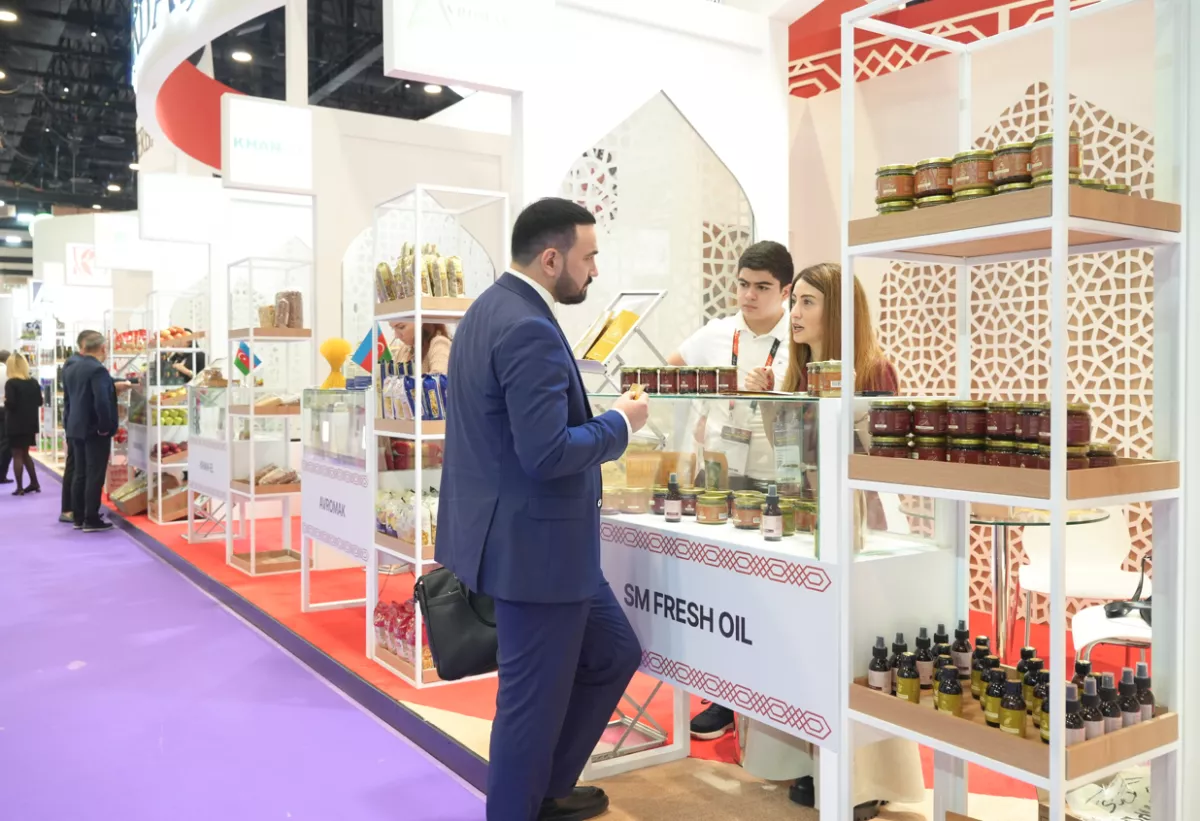 «На национальном стенде представлены кондитерские изделия, консервированные продукты, мучные изделия, сухофрукты и свежие фрукты, орехи, масла и пасты, безалкогольные напитки, минеральная вода, мед, а также другие продукты питания. Кроме того, на стенде участникам предоставлены печатные материалы о механизмах поддержки предпринимателей в Азербайджане, благоприятной деловой и инвестиционной среде, а также рекламные видеоролики компаний-участниц», — отмечается в информации.