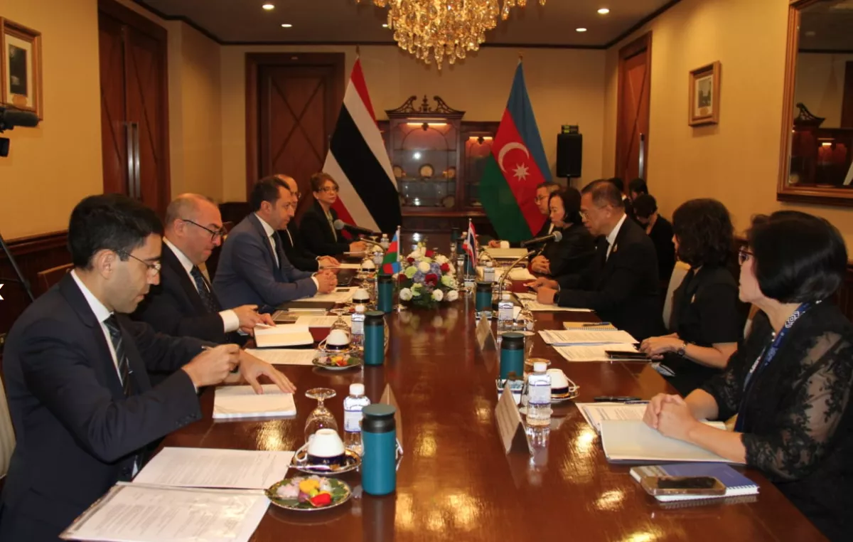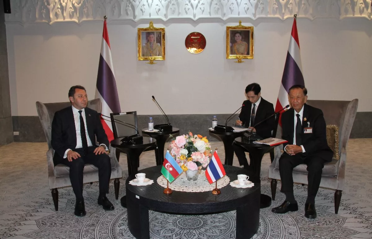 На встрече делегации Азербайджана с министром иностранных дел Таиланда Сихасаком Пхуангкеткеу было выражено удовлетворение текущим уровнем политических отношений между двумя странами, отмечено, что открытие нашего посольства и проведение первых политических консультаций будут способствовать укреплению сотрудничества в различных сферах.