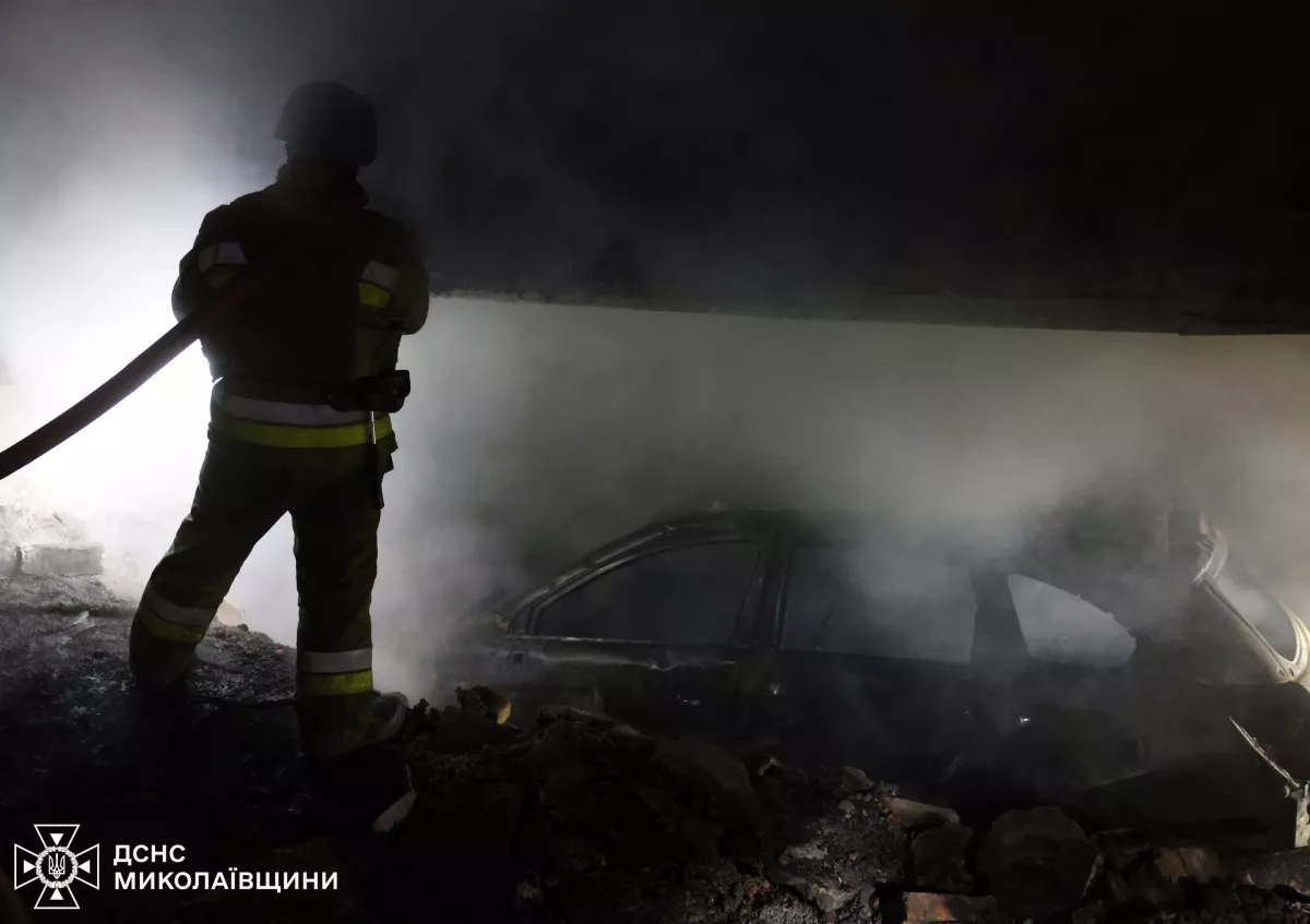Ночью российские войска совершили массированную атаку БПЛА по Николаеву. В результате удара произошёл пожар на территории автогаражного кооператива площадью 50 кв. м, загорелись гаражи и легковой автомобиль. Пожар был ликвидирован пожарными.