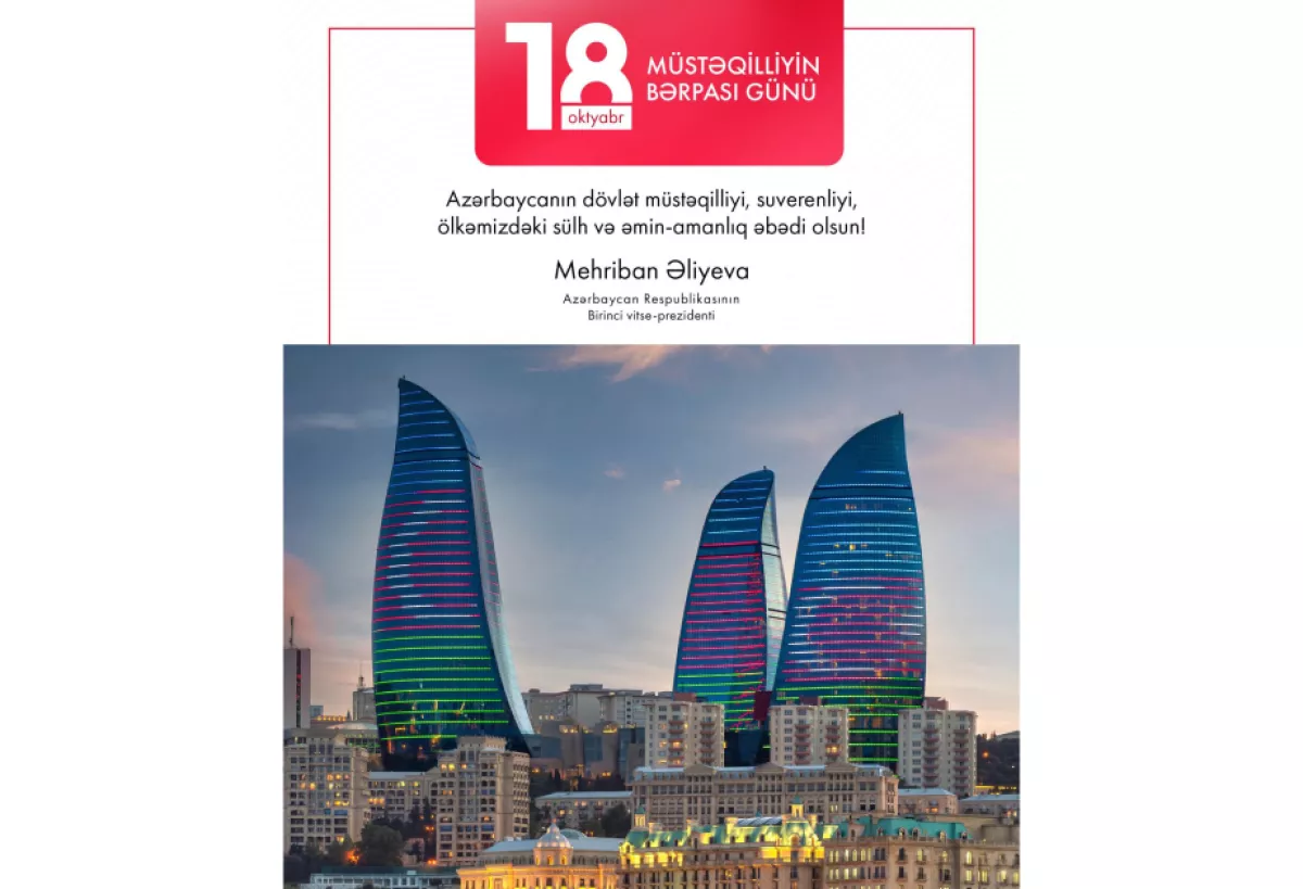 Первый вице-президент Азербайджана Мехрибан Алиева поделилась в своем официальном аккаунте в Instagram публикацией, посвященной 18 октября - Дню восстановления независимости нашей страны.
